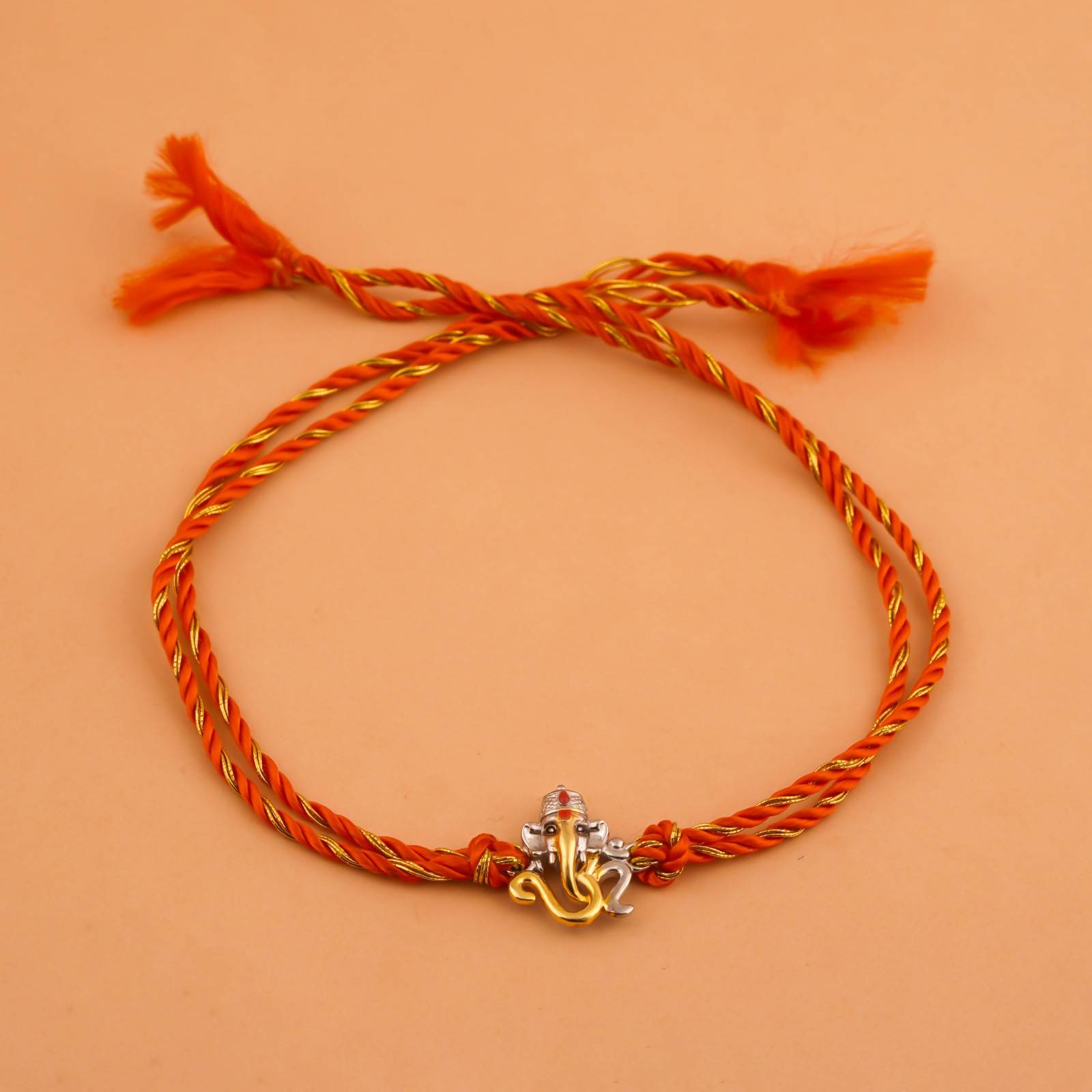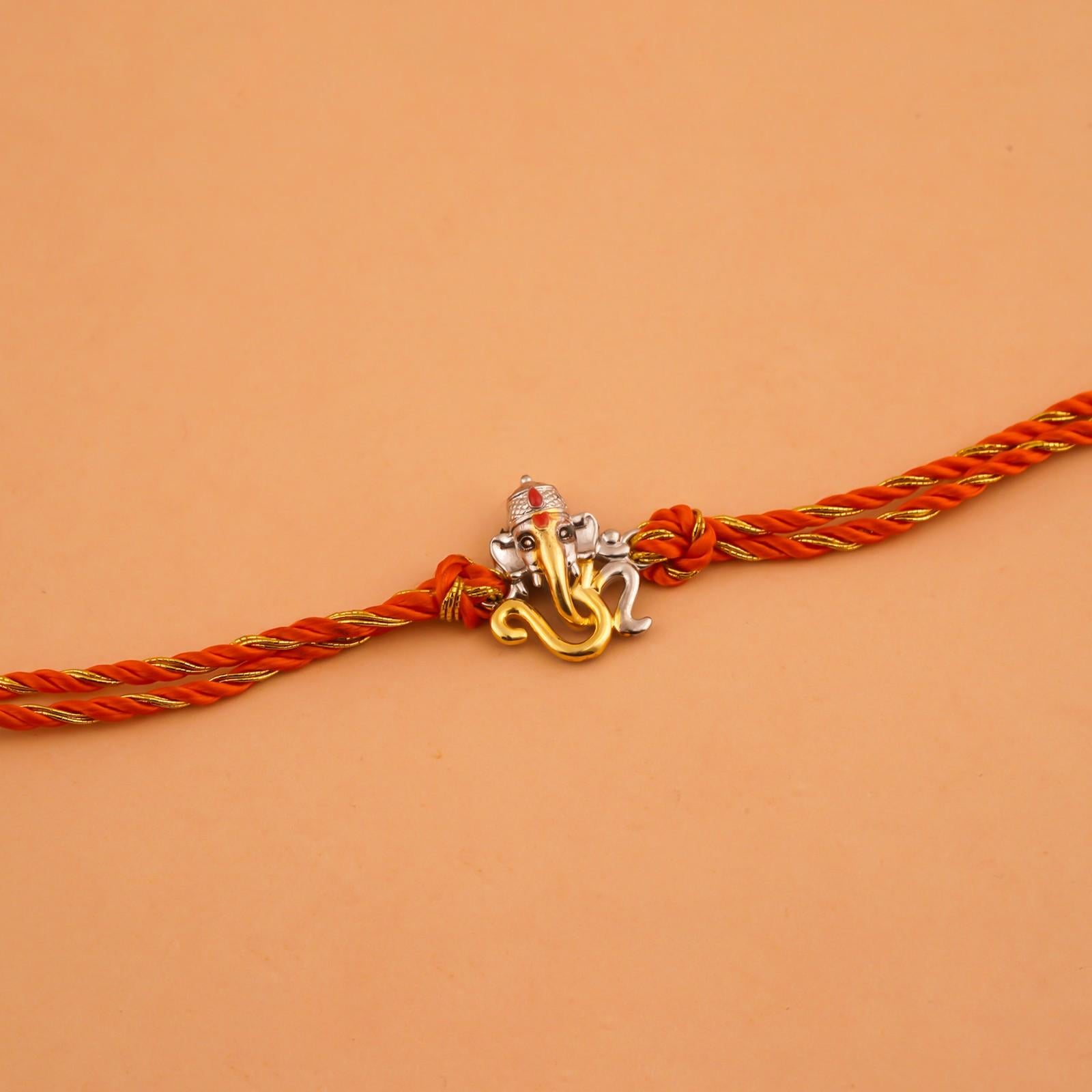 The Insight: The Silver OM Ganesha Rakhi is inspired by the notorious yet respectful relationship you have with your sibling.