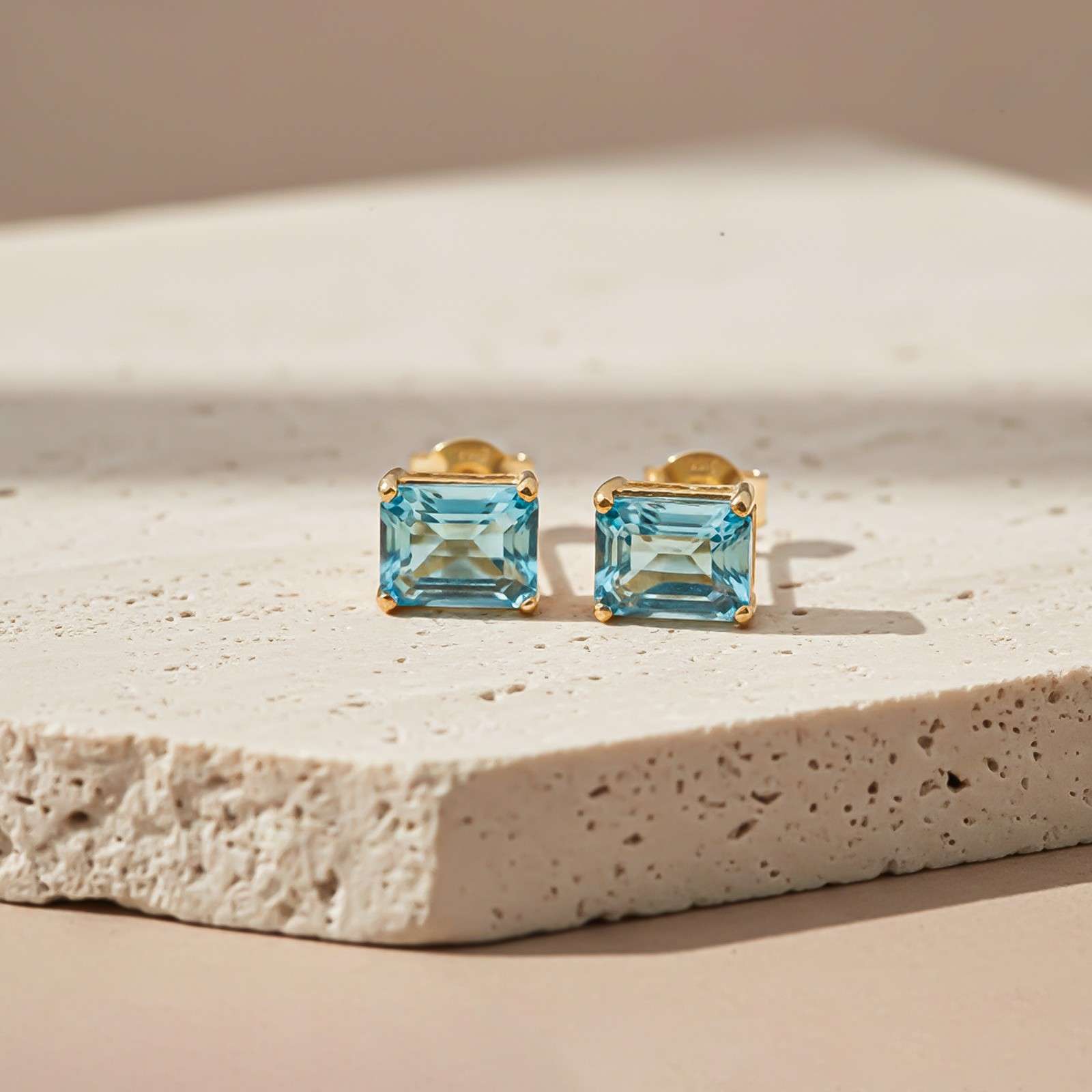 Golden Aqua Solitaire Stud Earrings