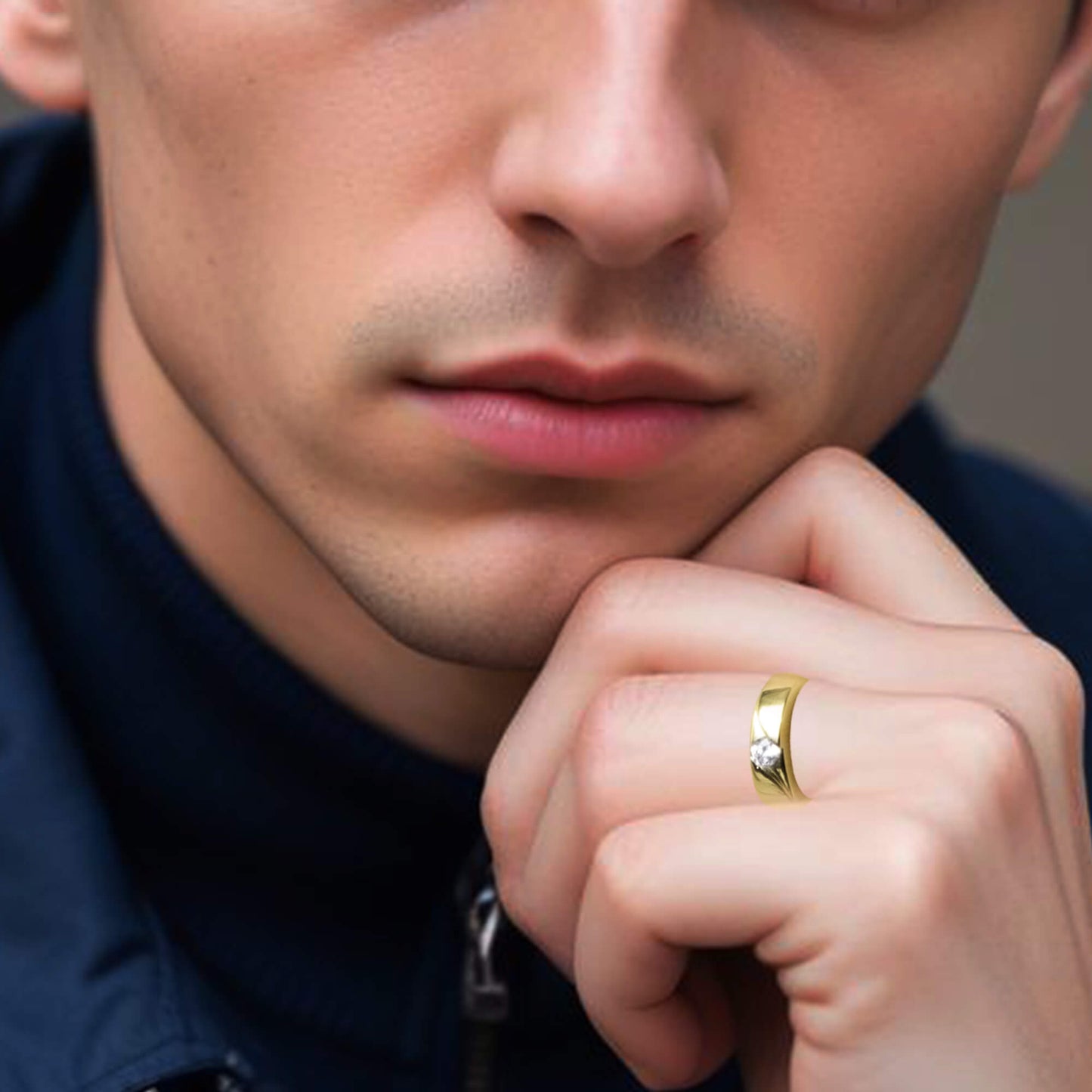 Men's Golden Criss Cross Band. This ring, made of 925 sterling silver 18K gold plating and featuring a dramatic crisscross design, combines classic style and modern charm. Great for both everyday use and special occasions.