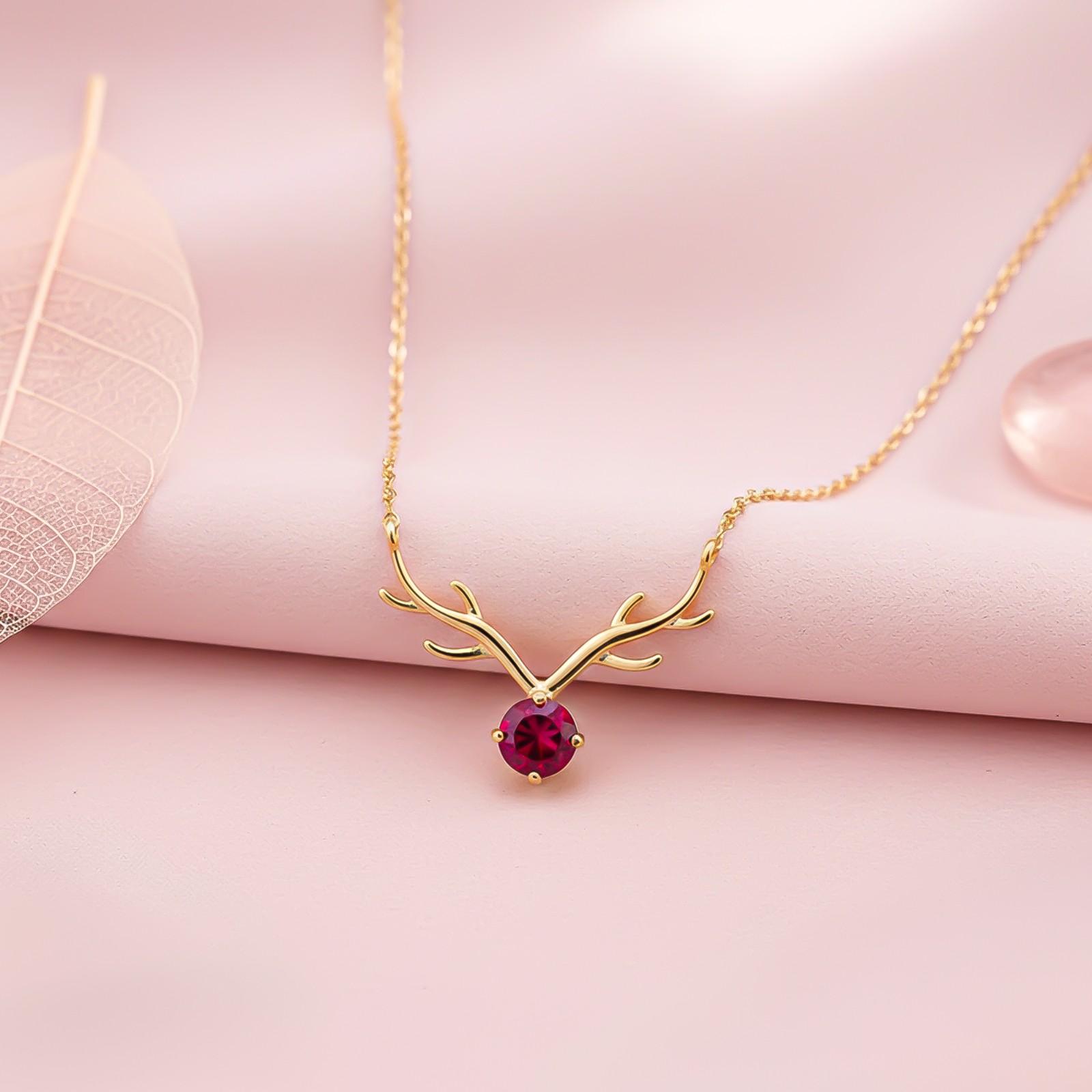 Introducing our exquisite Deer Theme Round Sapphire necklace, featuring a captivating pink stone pendant in the shape of a deer head. Crafted with meticulous attention to detail, this necklace combines elegance and nature-inspired charm effortlessly.