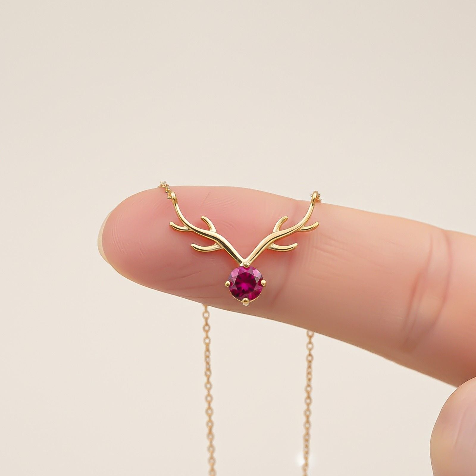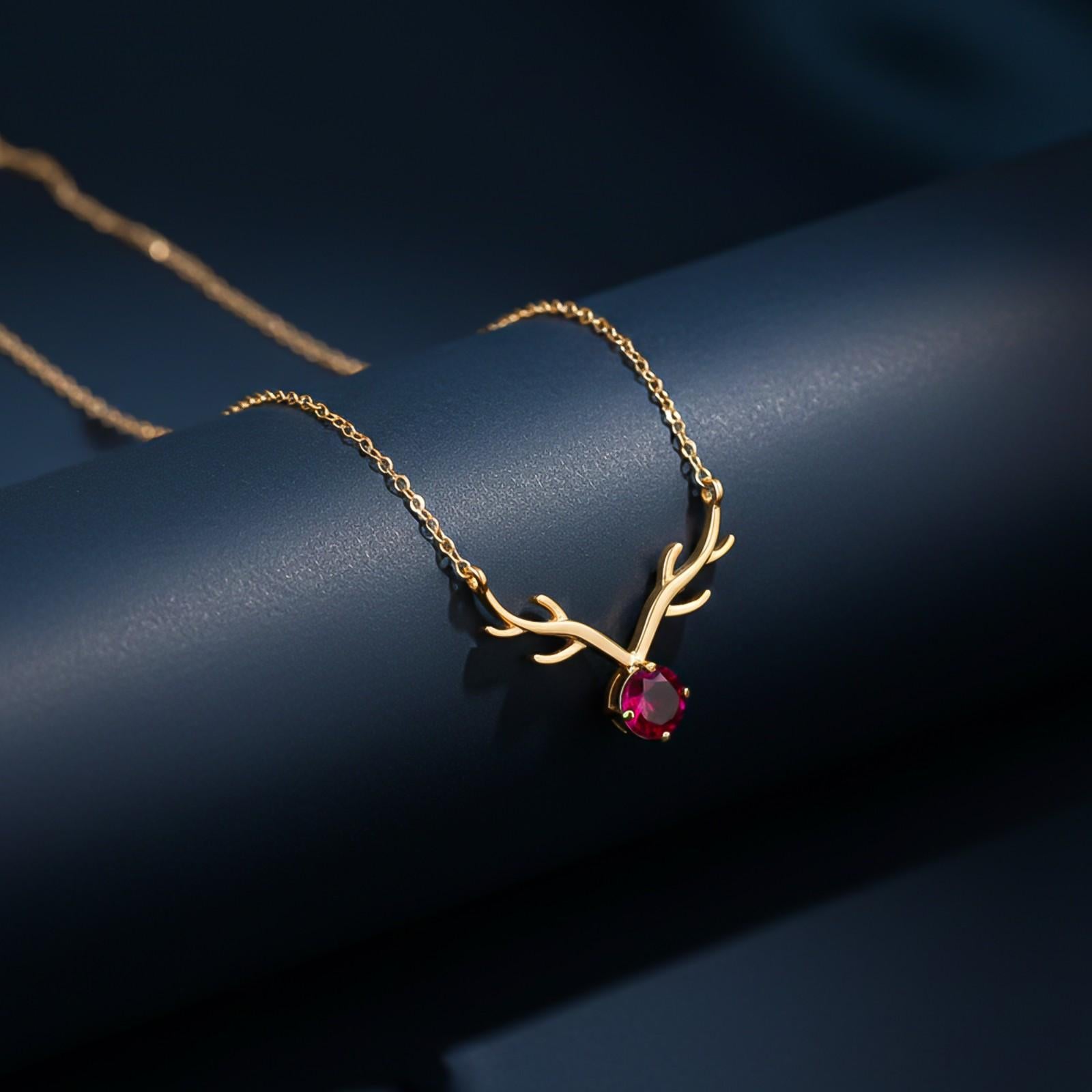 The pink stone adds a touch of femininity, while the deer head design symbolizes grace and gentleness. Perfect for both casual and formal occasions, this necklace is a must-have accessory for those who appreciate unique and stylish jewelry.