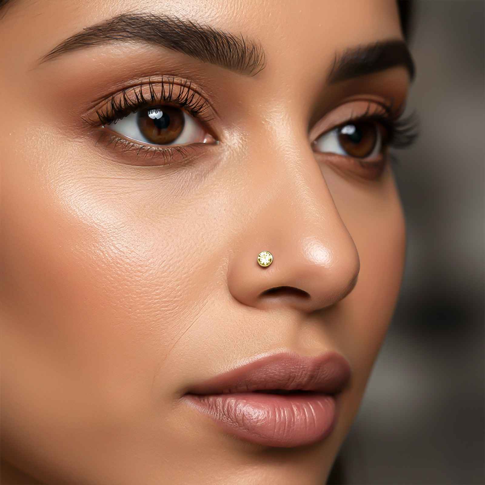 The flush bezel setting ensures a seamless and secure fit, providing both comfort and durability. Whether you're looking to add a touch of glamour to your everyday style or seeking a statement piece for a special occasion, this diamond nose ring is the perfect choice. Elevate your look with this timeless accessory that effortlessly blends classic beauty with modern design.