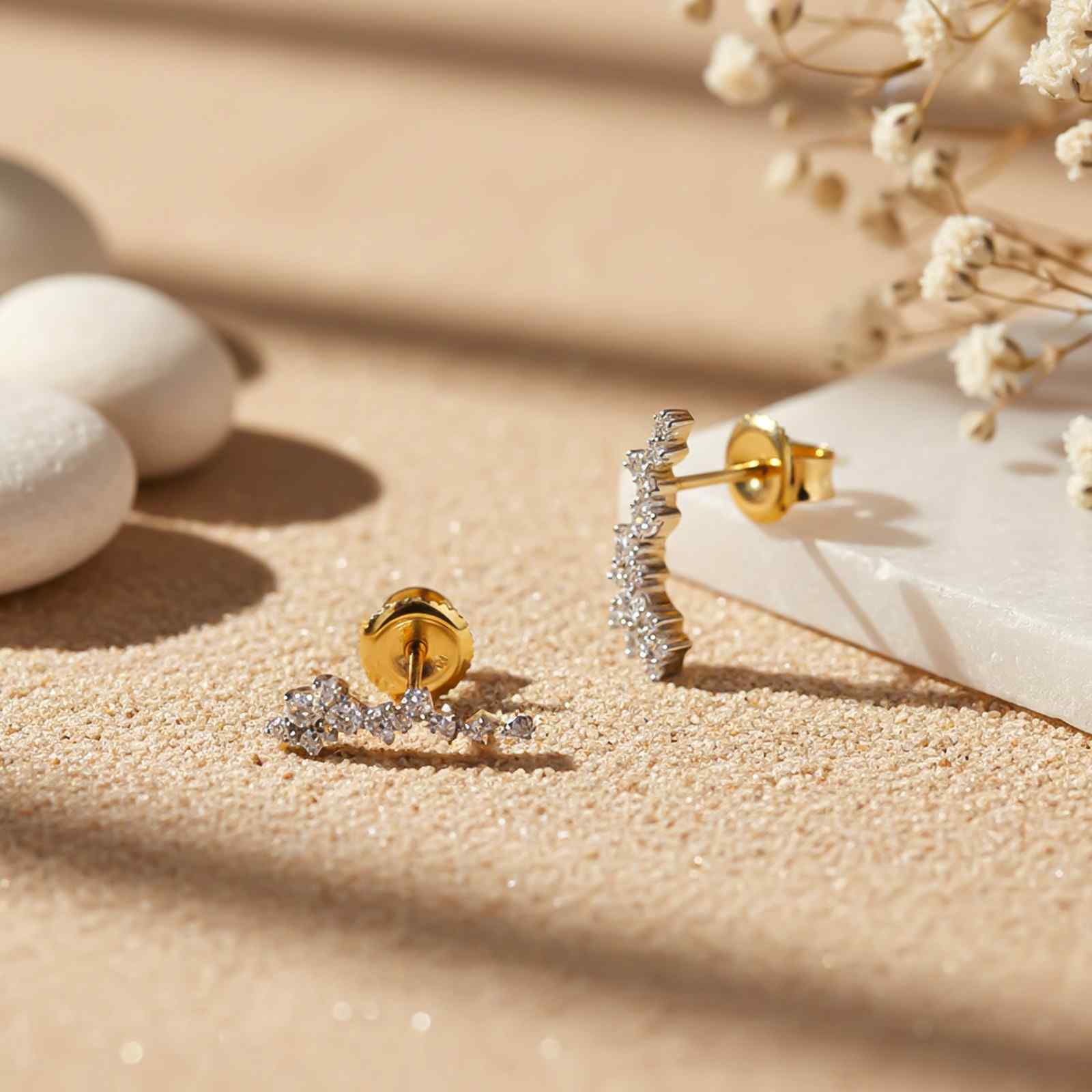 Golden Moissanite Ear Climber Earrings