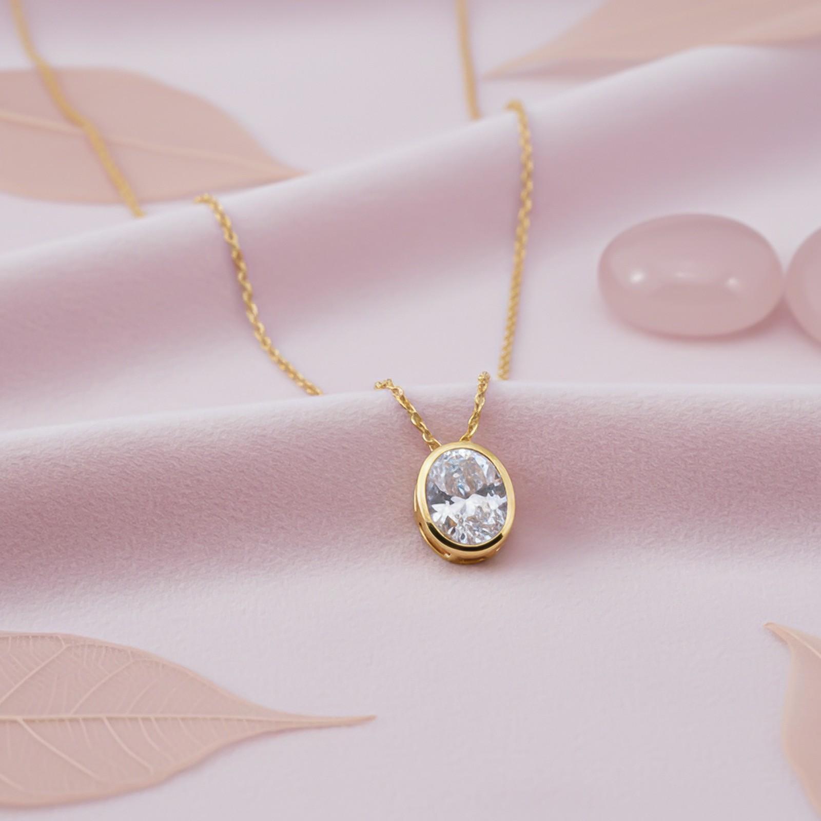 Elevate your style with the Silver Oval Classic Solitaire Bezel Pendant with chain. Featuring a oval shaped Zircon set in a minimalist sterling silver bezel setting.