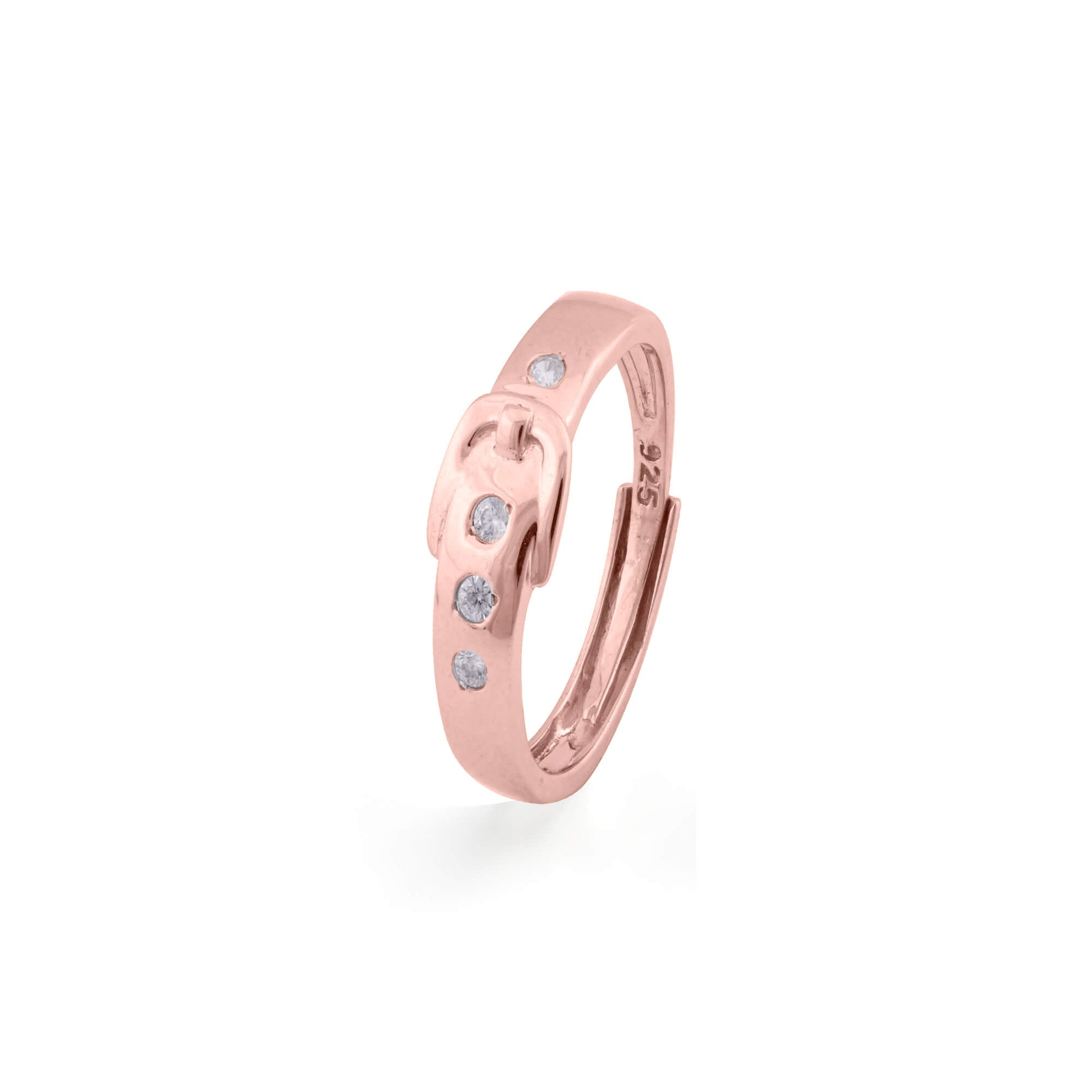 Belt Style Couple Promise Rings Set for two is an open ended/adjustable size anti-allergic rings set, its inner round edges make it perfect for Party Made in 925 Sterling Silver with 18K rose gold plating. Perfect silver ring for women & girls.