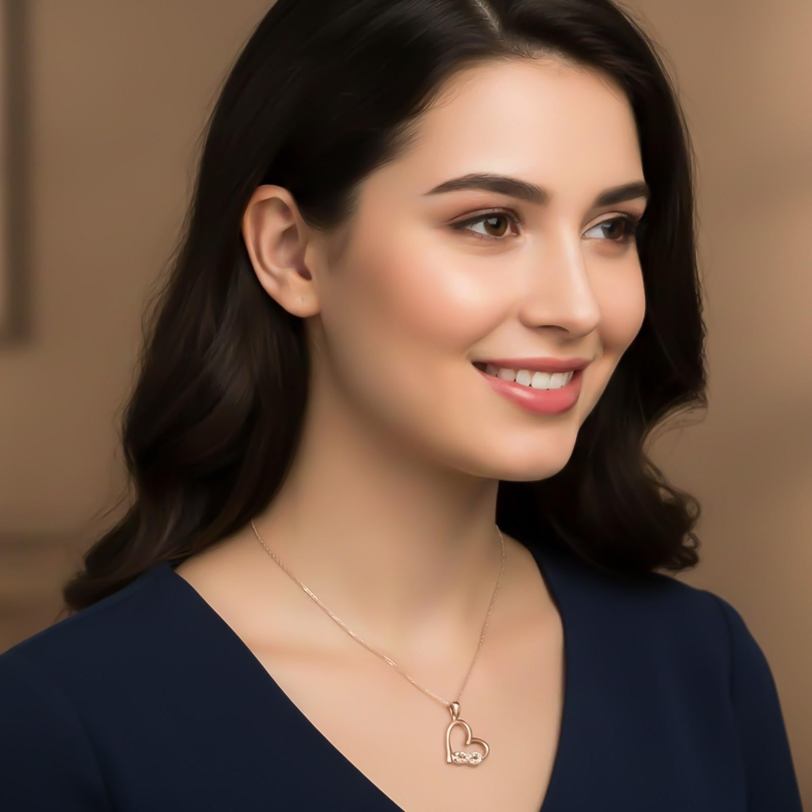 A lasting symbol of love and commitment. Our Heart Infinity Silver Pendant, created with meticulous attention to detail, is more than simply jewelry; it's a timeless symbol of undying love and unbreakable dedication. The tiny heart-shaped pendant, decorated with sparkling cubic zirconia stones, represents the endless tie shared by two souls. Whether it's a romantic gesture or a present of thanks, this necklace captures powerful sentiments that words can't always explain.