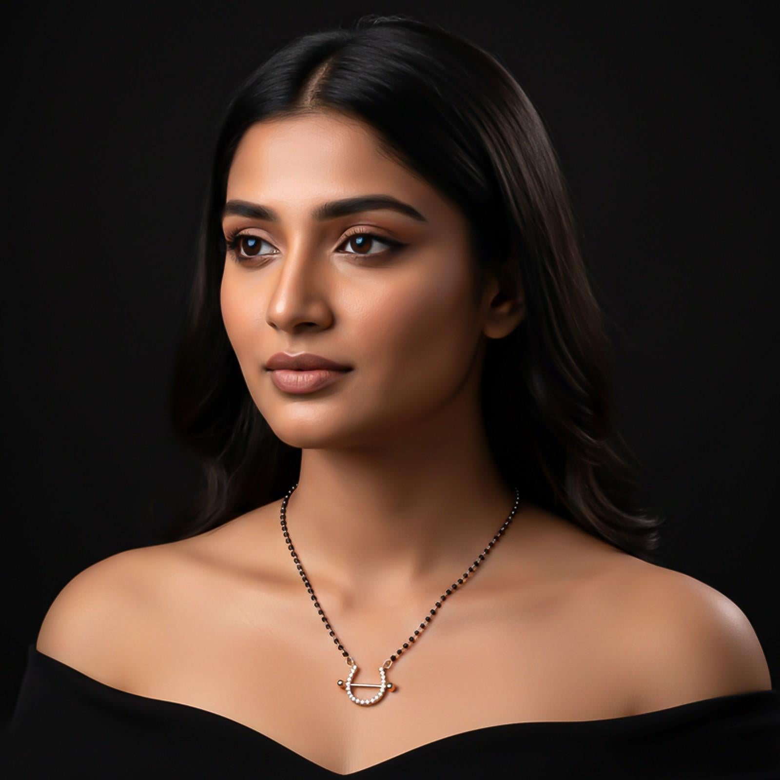925 Sterling Silver Rose Gold U Bar Mini Mangalsutra is a perfect mixture of both old and new. This beautiful piece, designed for women, includes a thin U bar plated in rose gold, adding charm to any outfit. It's more than simply a piece of jewelry; it's an amazing symbol of love and commitment, making it a great gift for your wife. Celebrate your relationship with this amazing and modern mangalsutra