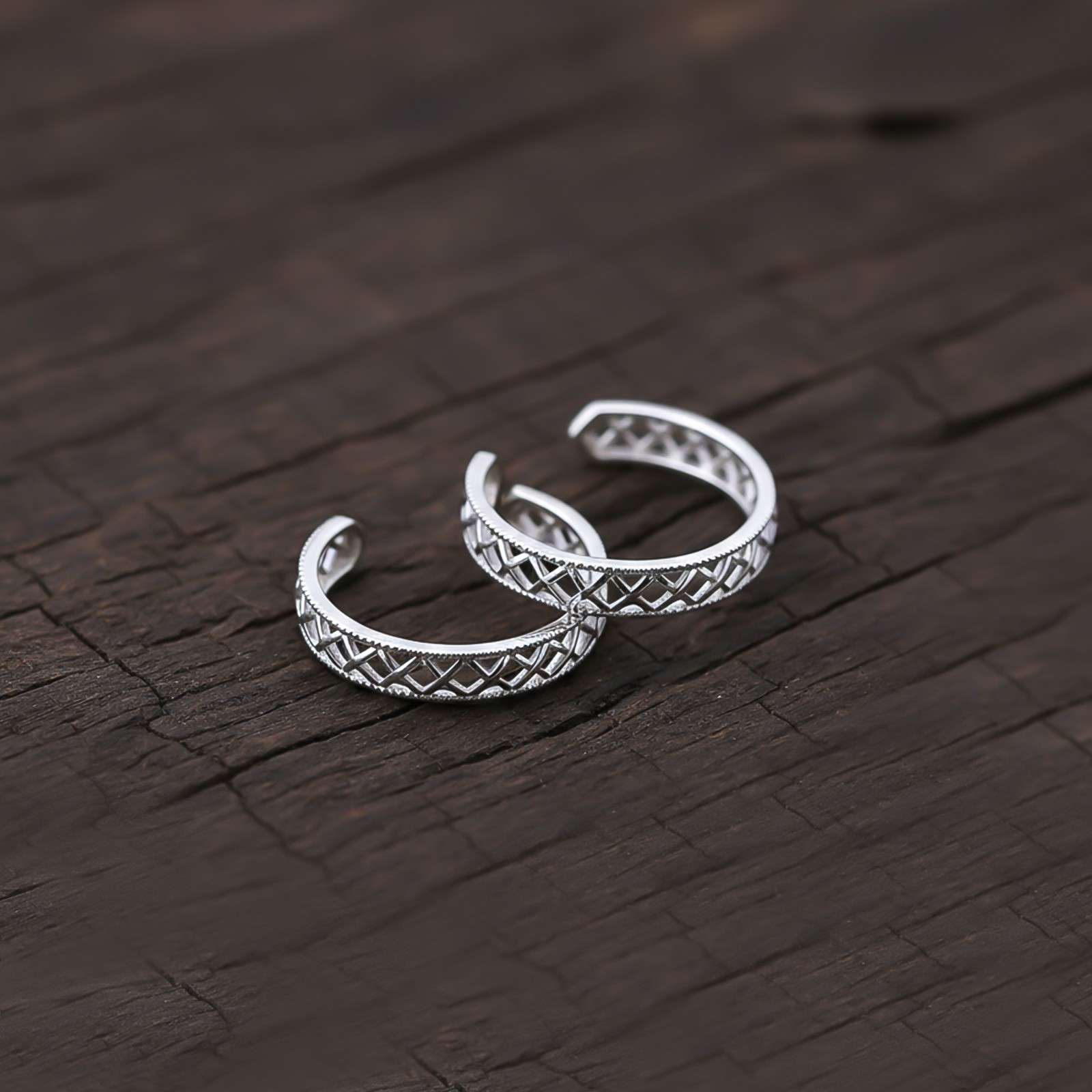 The Design: These toe rings are crafted from sterling silver and feature intricate carvings that create an alluring and eye-catching design.