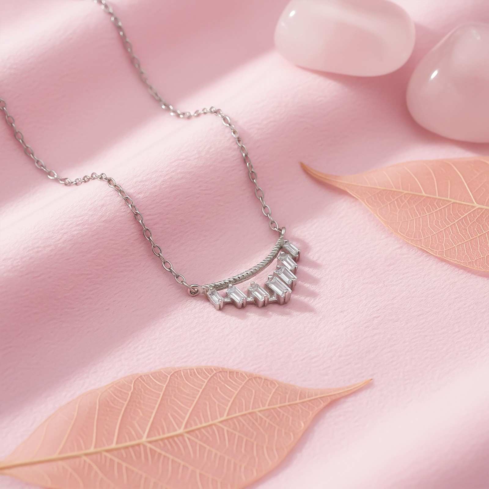 With its sleek baguette design, this Silver Fancy Pendant exudes modern elegance, a dazzling expression of sophistication and refined beauty.