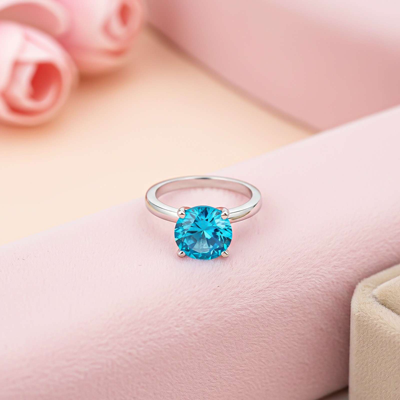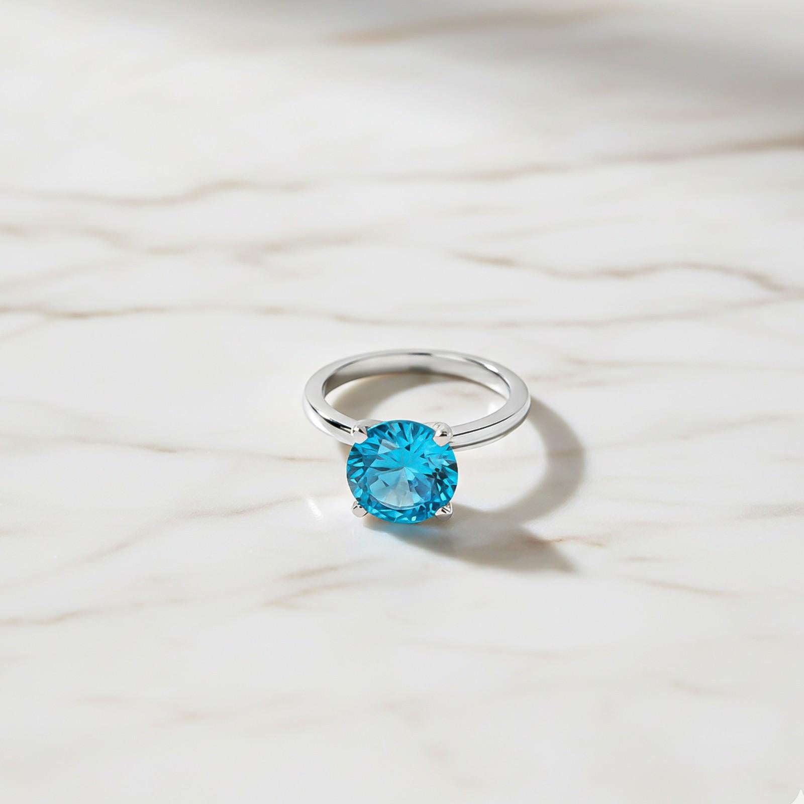 Silver Blue Topaz Solitaire Ring