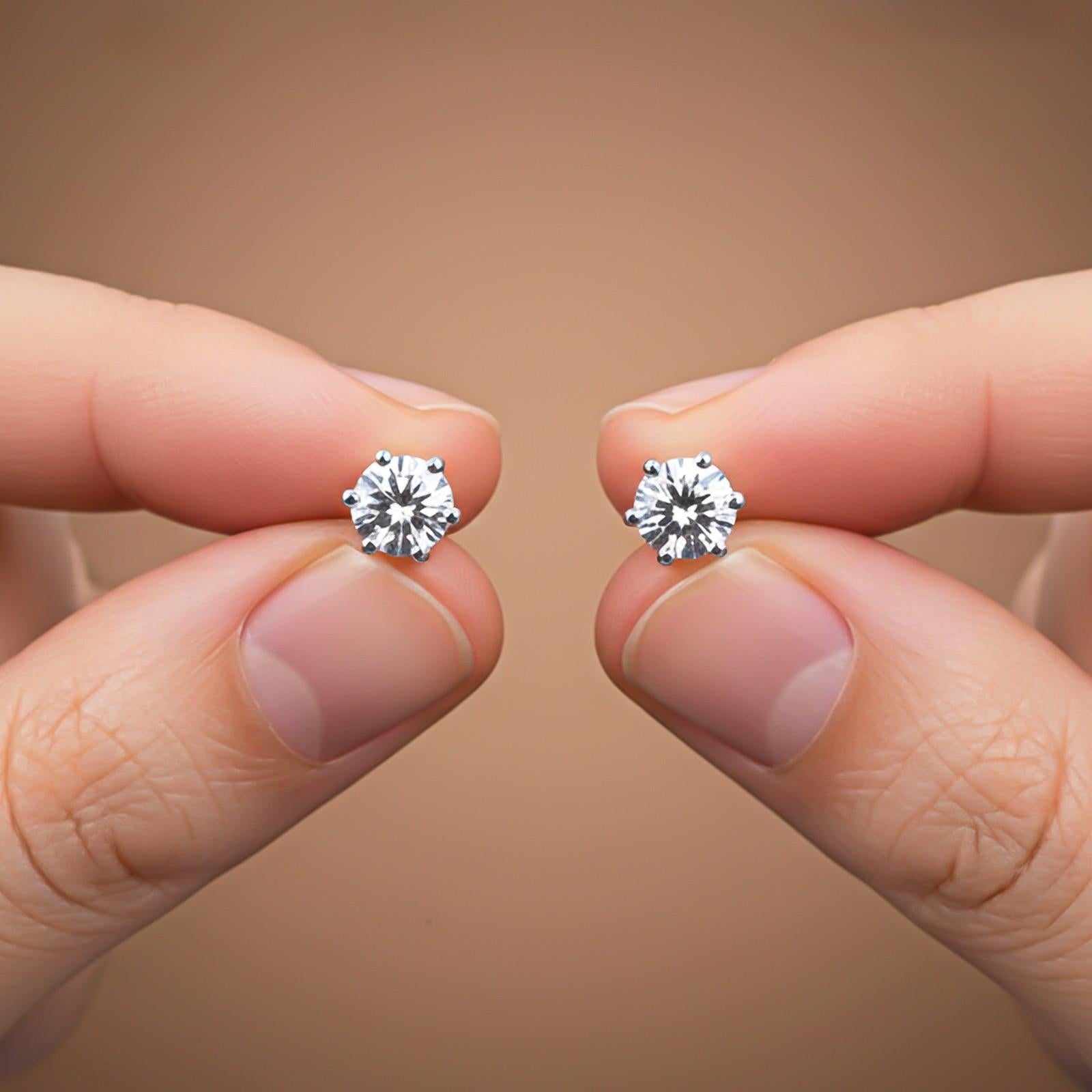 These silver stud earrings have a round shape 6 prongs with a zircon placed on them. and secure with push back.