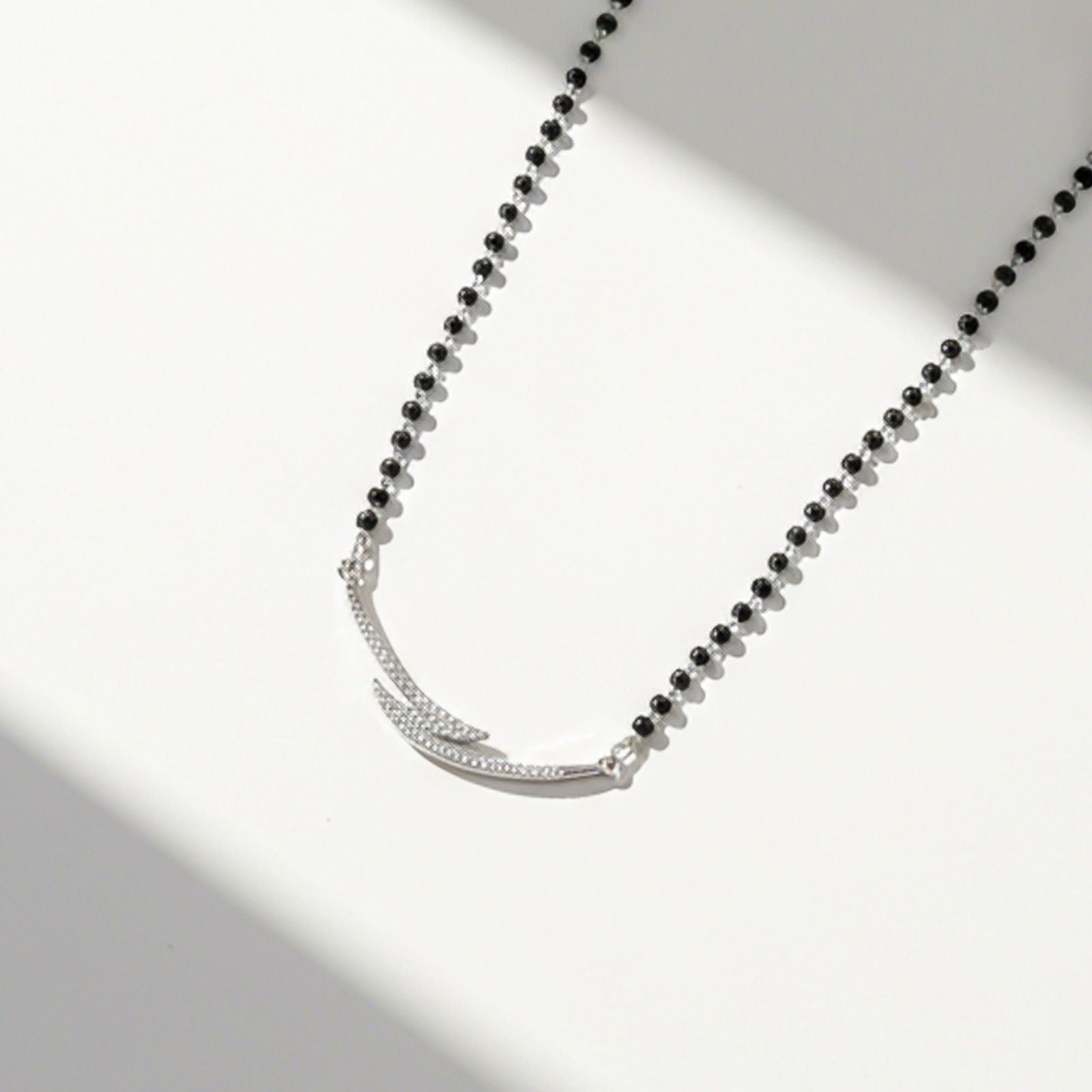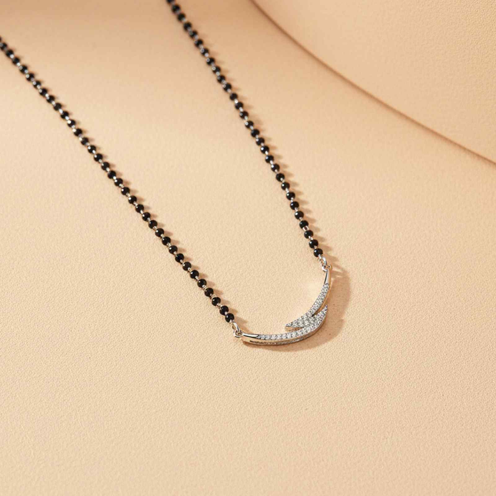 Silver Contemporary The 925 Sterling Silver Diamond Mangalsutra combines both past and present. This gorgeous item is made of high-quality sterling silver and set with sparkling diamonds, providing an everlasting symbol of love and dedication.