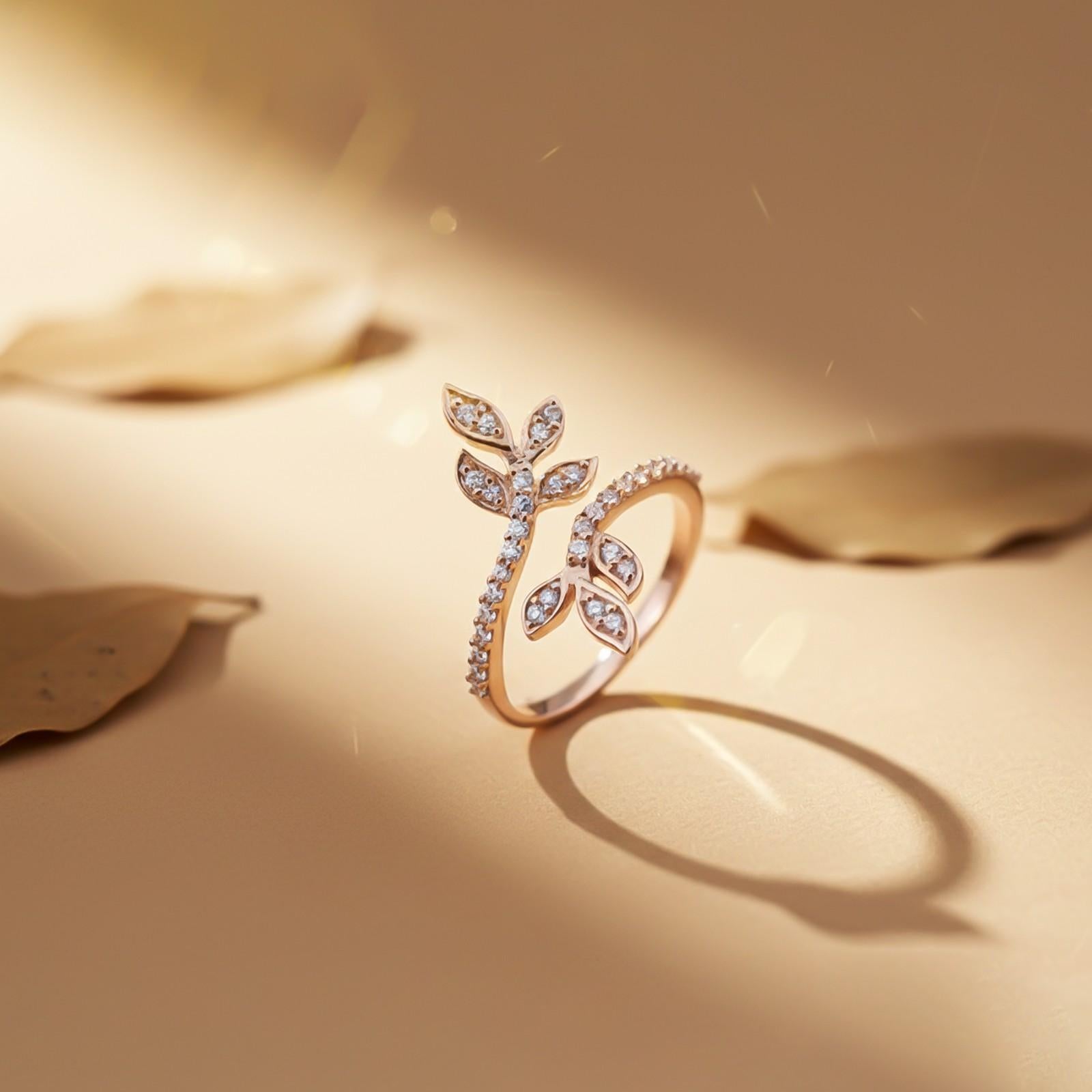 These beautiful 925 sterling silver diamond rose gold plated leaves style round ring is symbol of love and nature .It is crafted from 925 sterling silver and set with AAA cubic zirconia gems. The ring is proved to be antiallergic, has no harmful constituents, nickel-free, lead-free, and cadmium-free.