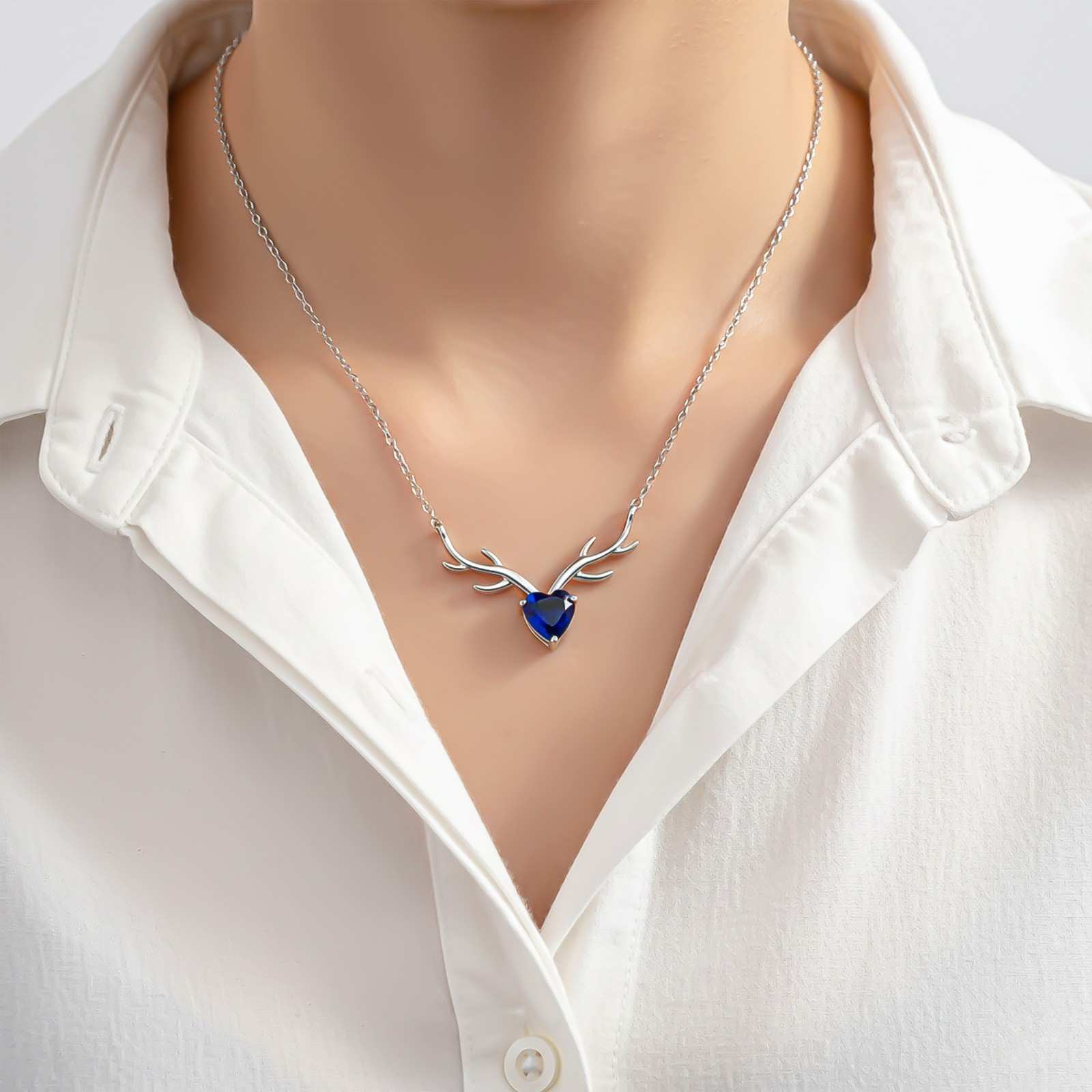 Silver Deer Theme Heart Sapphire Necklace