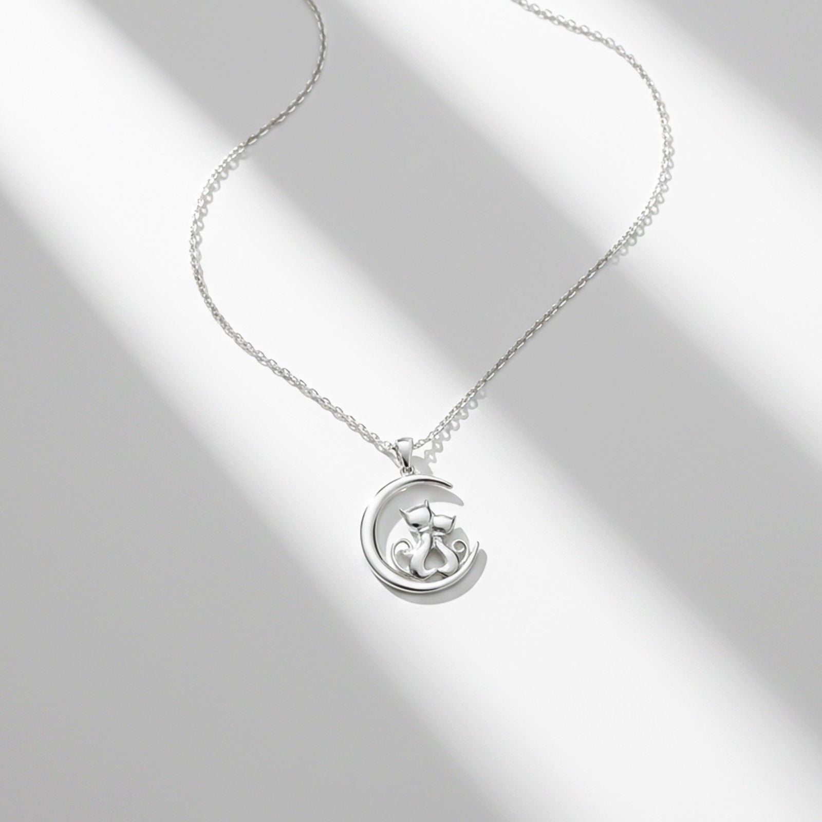Chase your dreams under the moonlight with this enchanting couple cat pendant.
