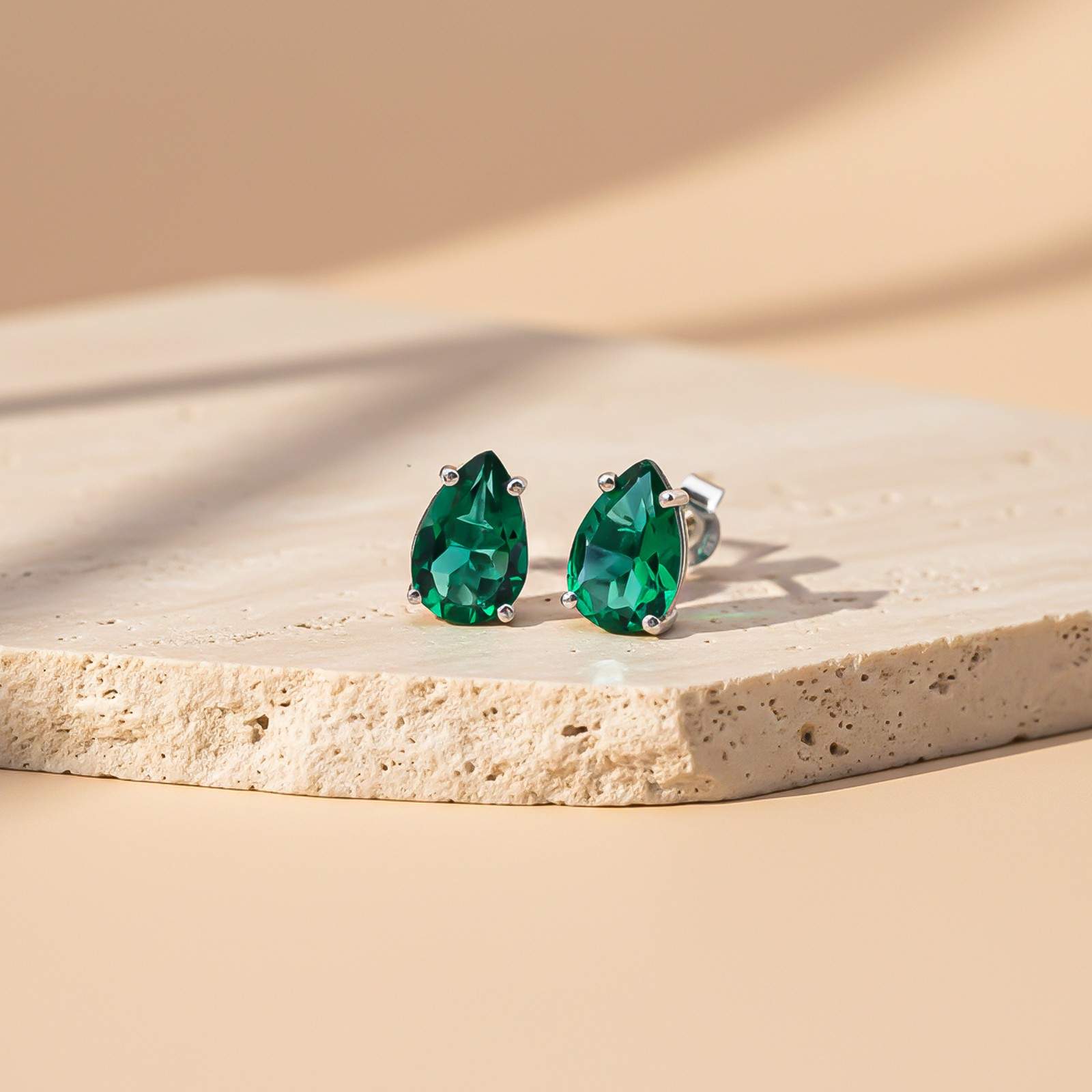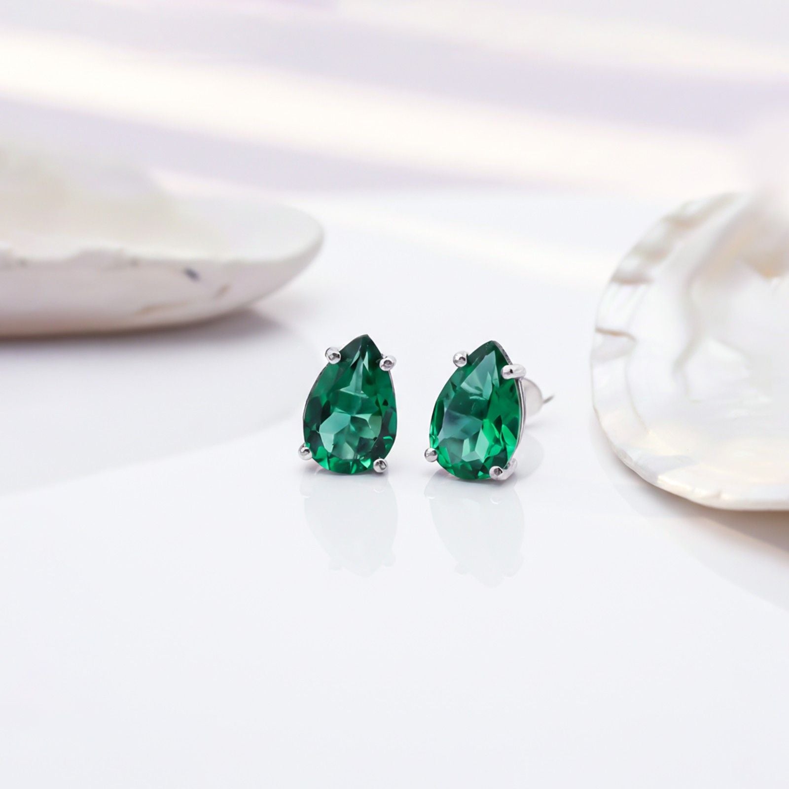 Introducing our exquisite Emerald Pear Shape Stud Earrings, a timeless addition to any jewelry collection. Crafted with precision and elegance, these earrings feature pear-shaped emerald gemstones that radiate a captivating green hue.