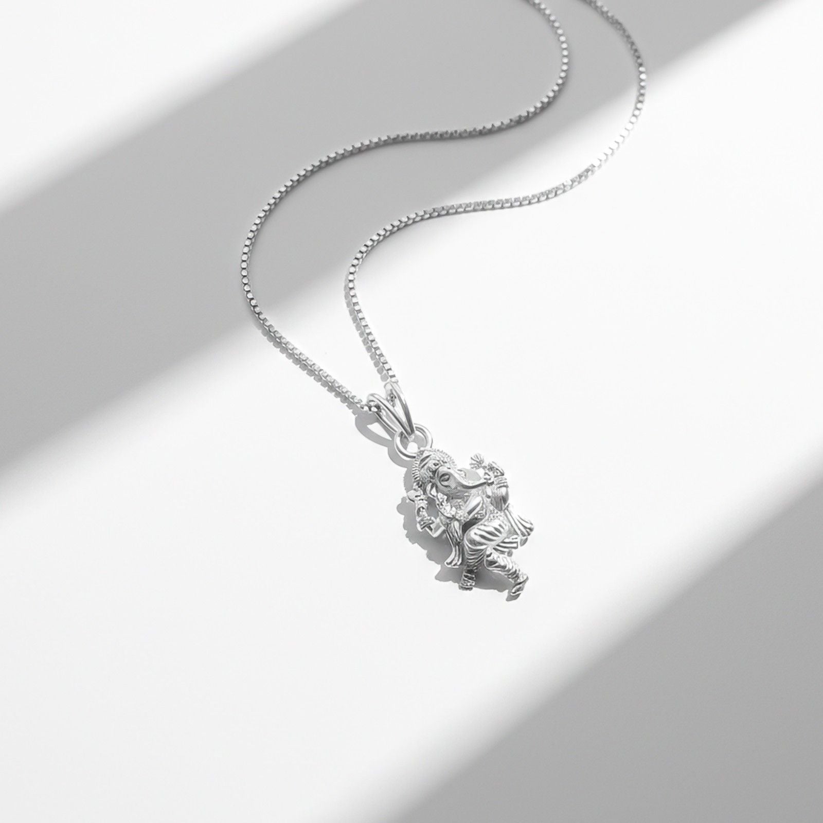 This exquisite silver pendant features a depiction of the Hindu god Ganesha, known as the remover of obstacles and the god of beginnings. The intricate design includes a delicate flower, adding a touch of elegance to the piece. Perfect for those seeking blessings and protection, this God Ganesha Blessing Silver Pendant is a beautiful accessory with deep spiritual significance