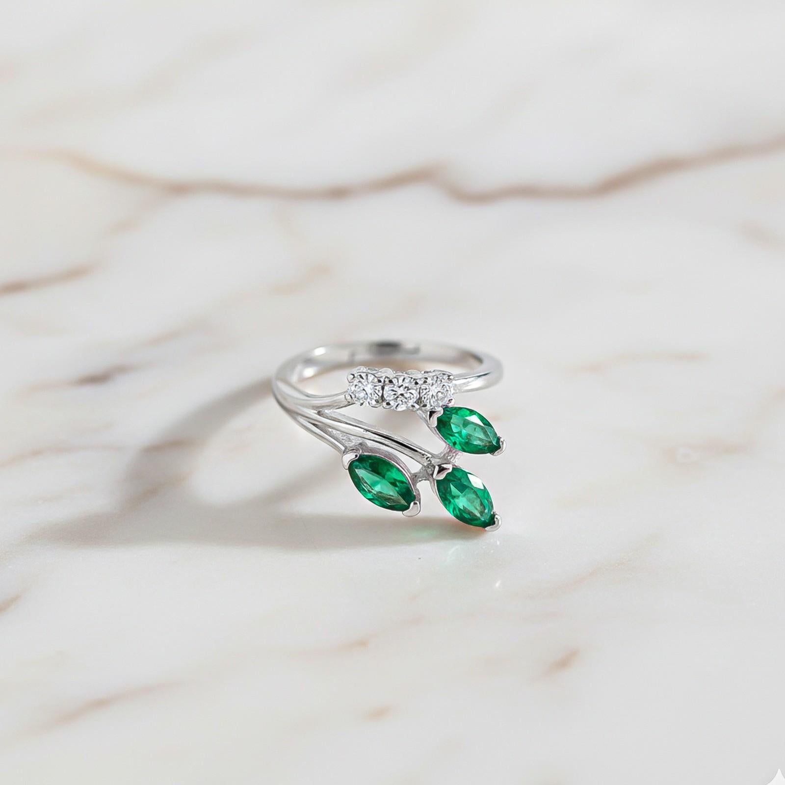 Introducing our enchanting Green Emerald Leaf Design Ring, a stunning expression of nature's beauty and elegance.