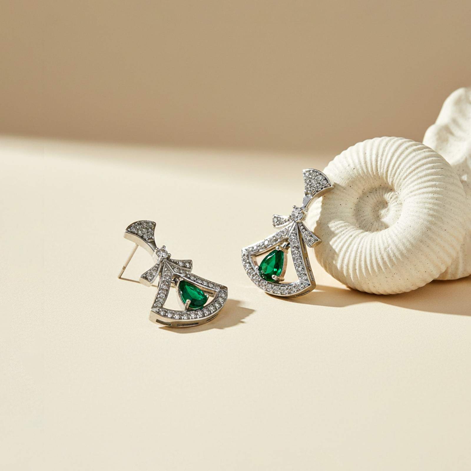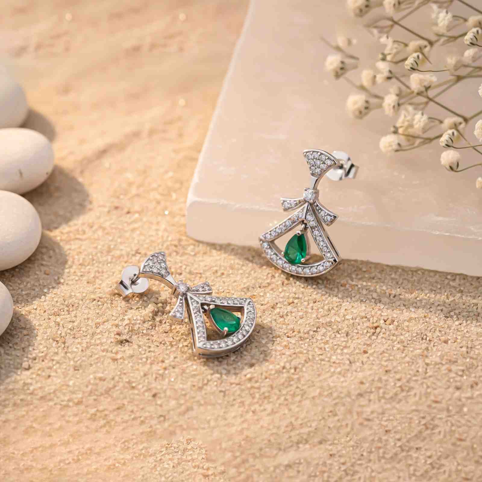 Presenting our Silver & Green Hamsa Eye Earrings, an alluring fusion of fashion and meaning.