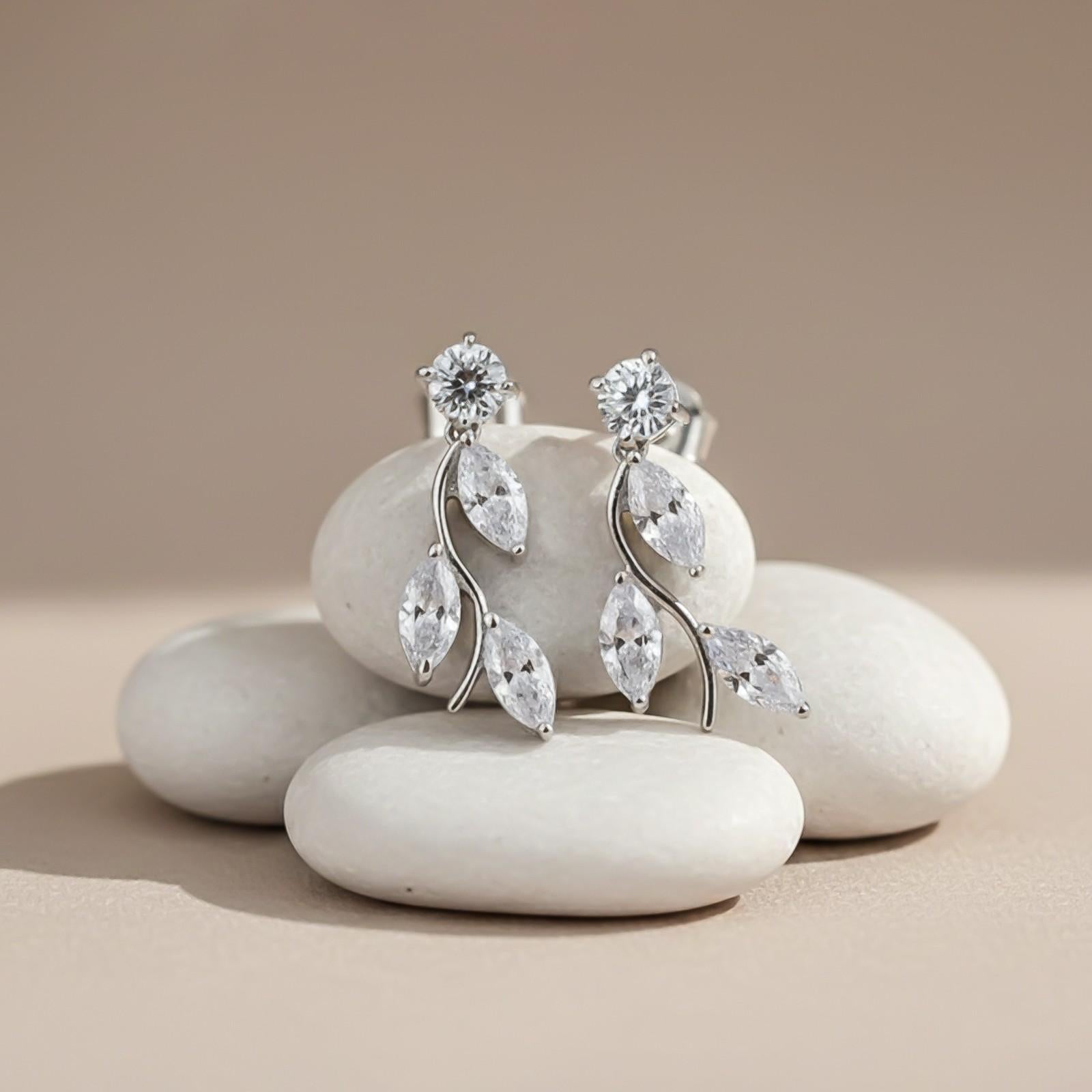 This silver earring features leafy design marquise stone studded with top round is secured with a push back on closure.