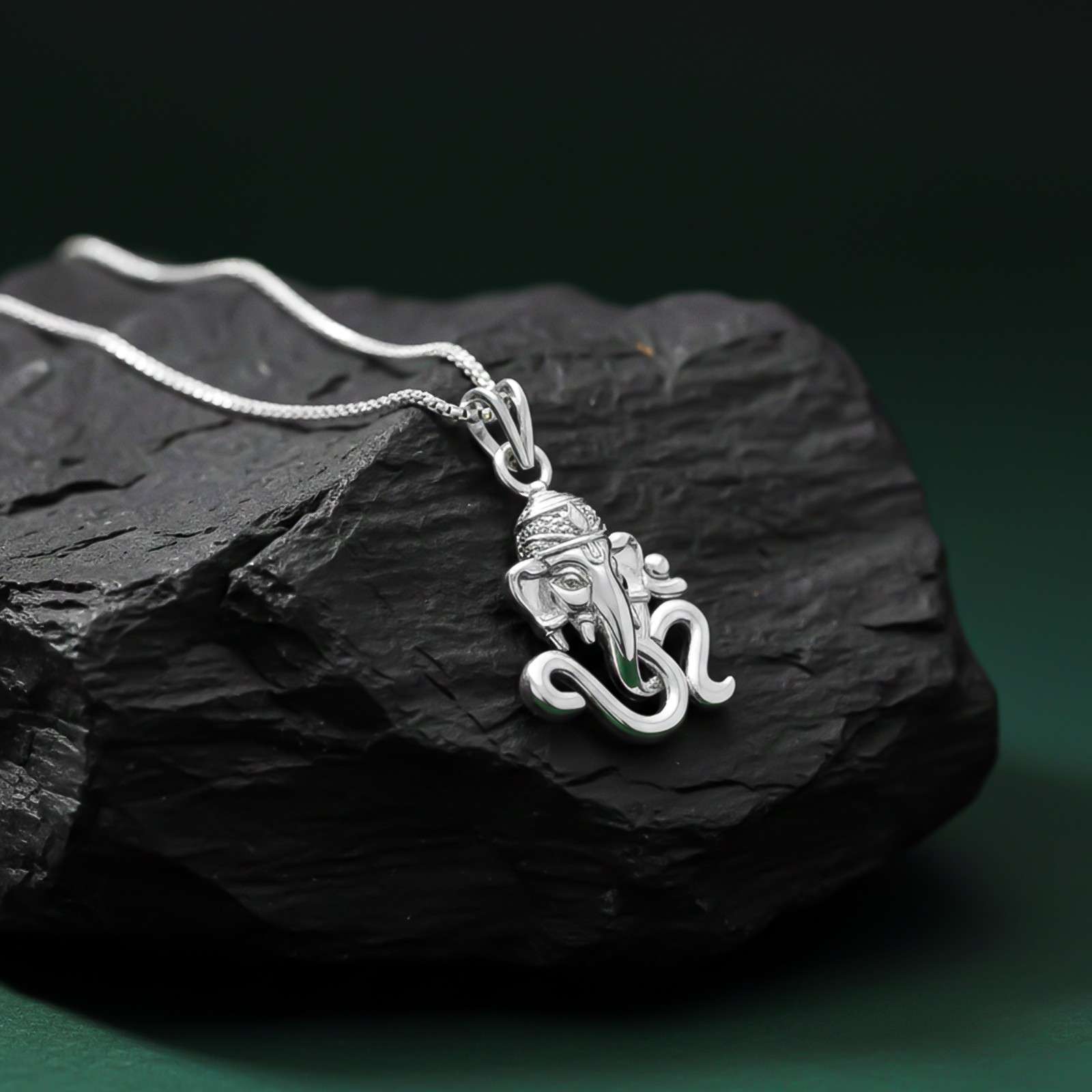 OM Idol Ganesha Pendant An Ensign of Sacred Knowledge and Wealth With our Silver Ganesha Pendant, you can embrace the heavenly presence of OM Idol Ganesha . This magnificent piece of jewelry, which was created with great care and regard, invokes the blessings of the esteemed deity and is a potent emblem of wisdom, prosperity, and auspiciousness.