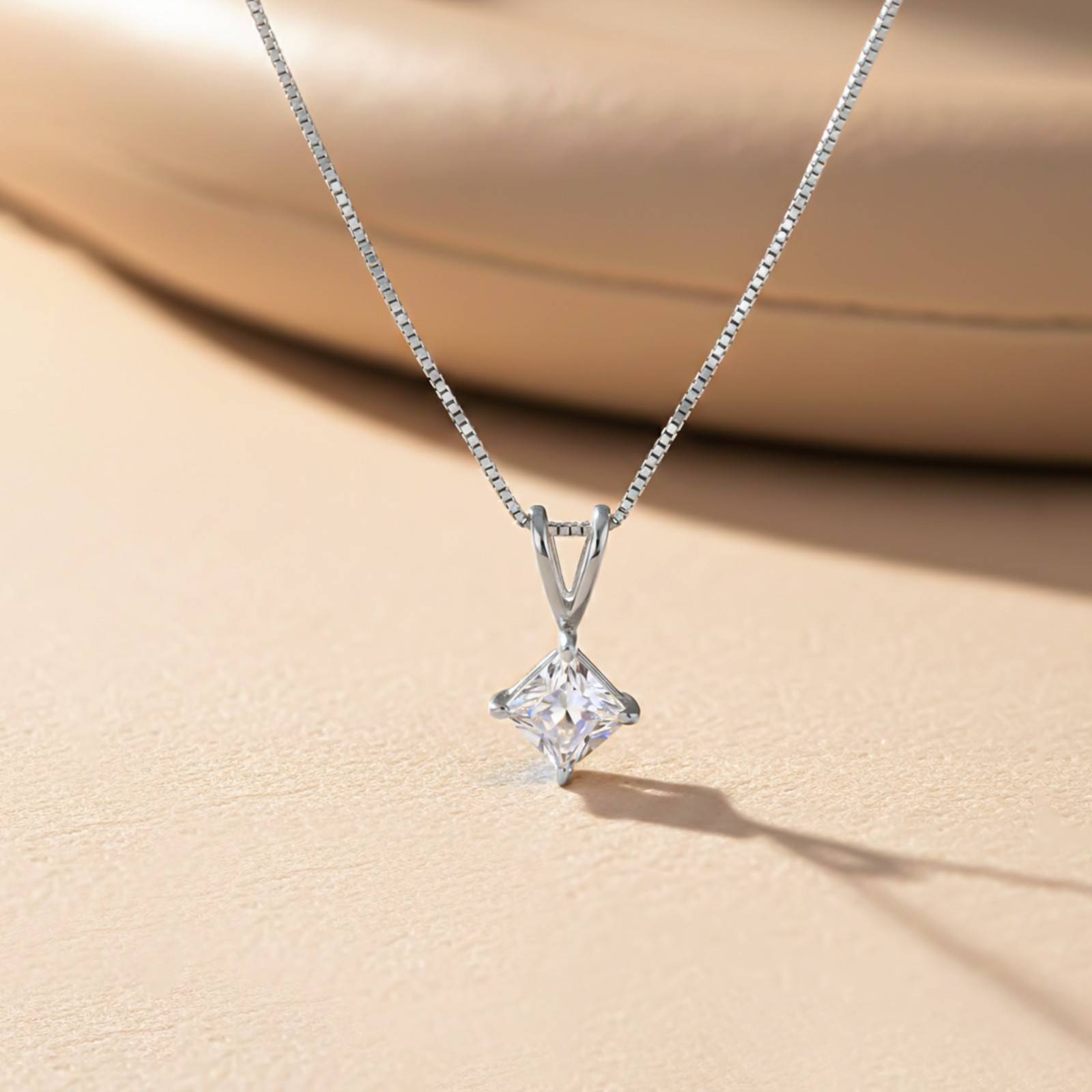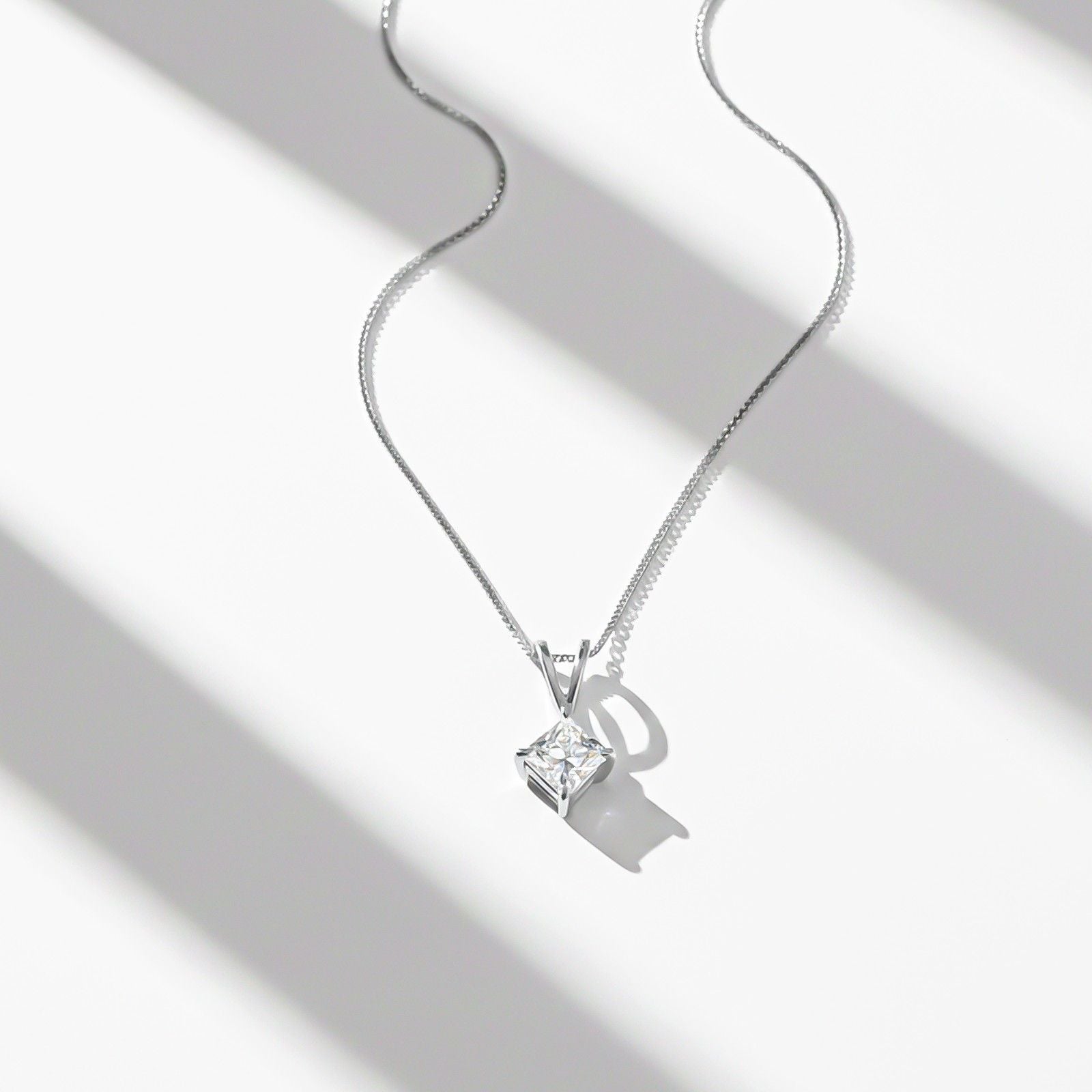This Princess silver solitaire pendant combines traditional with contemporary grace,