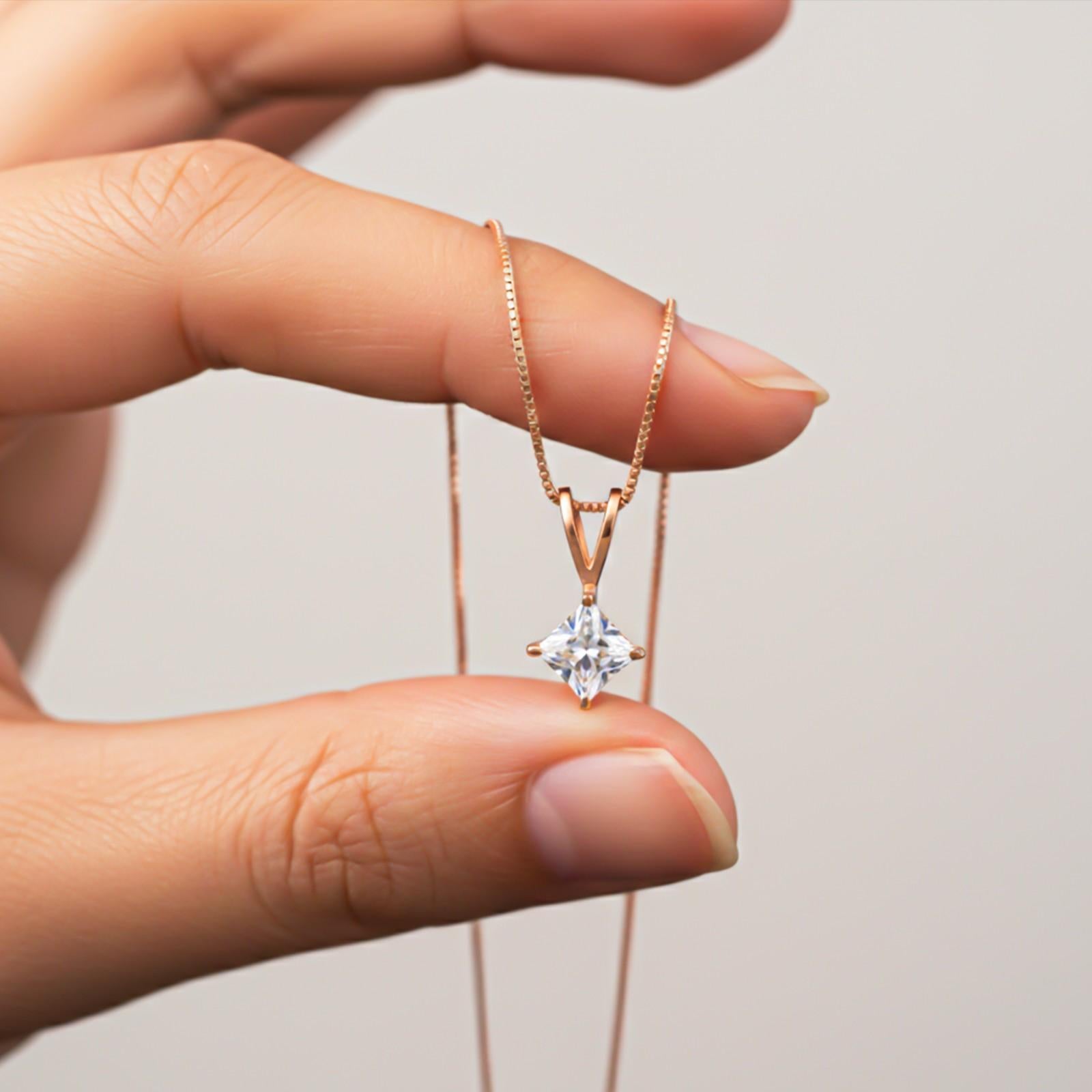 Elevate your style with the Silver Princess Classic Solitaire Pendant with chain. Featuring a princess shaped Zircon set in a minimalist sterling silver prong setting.