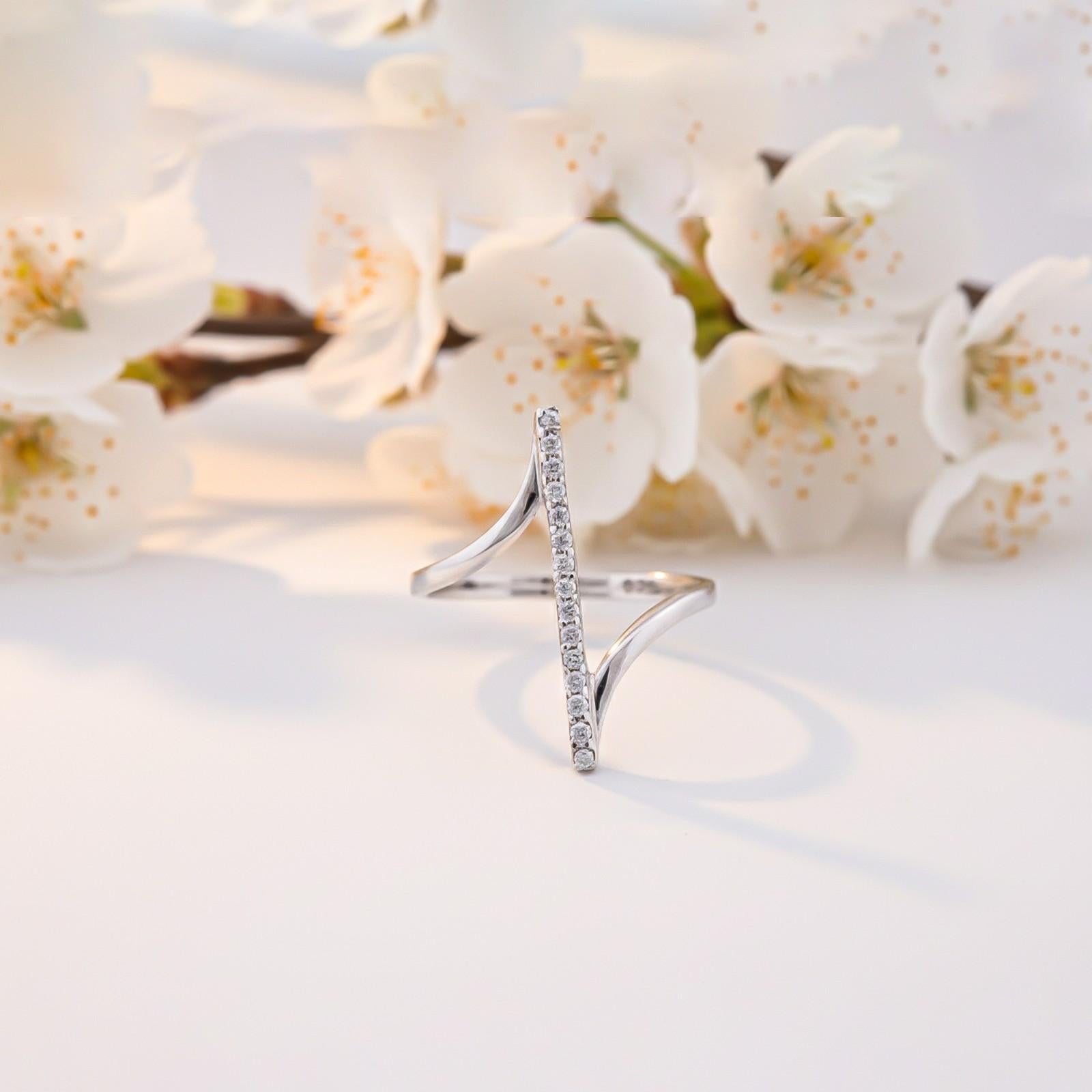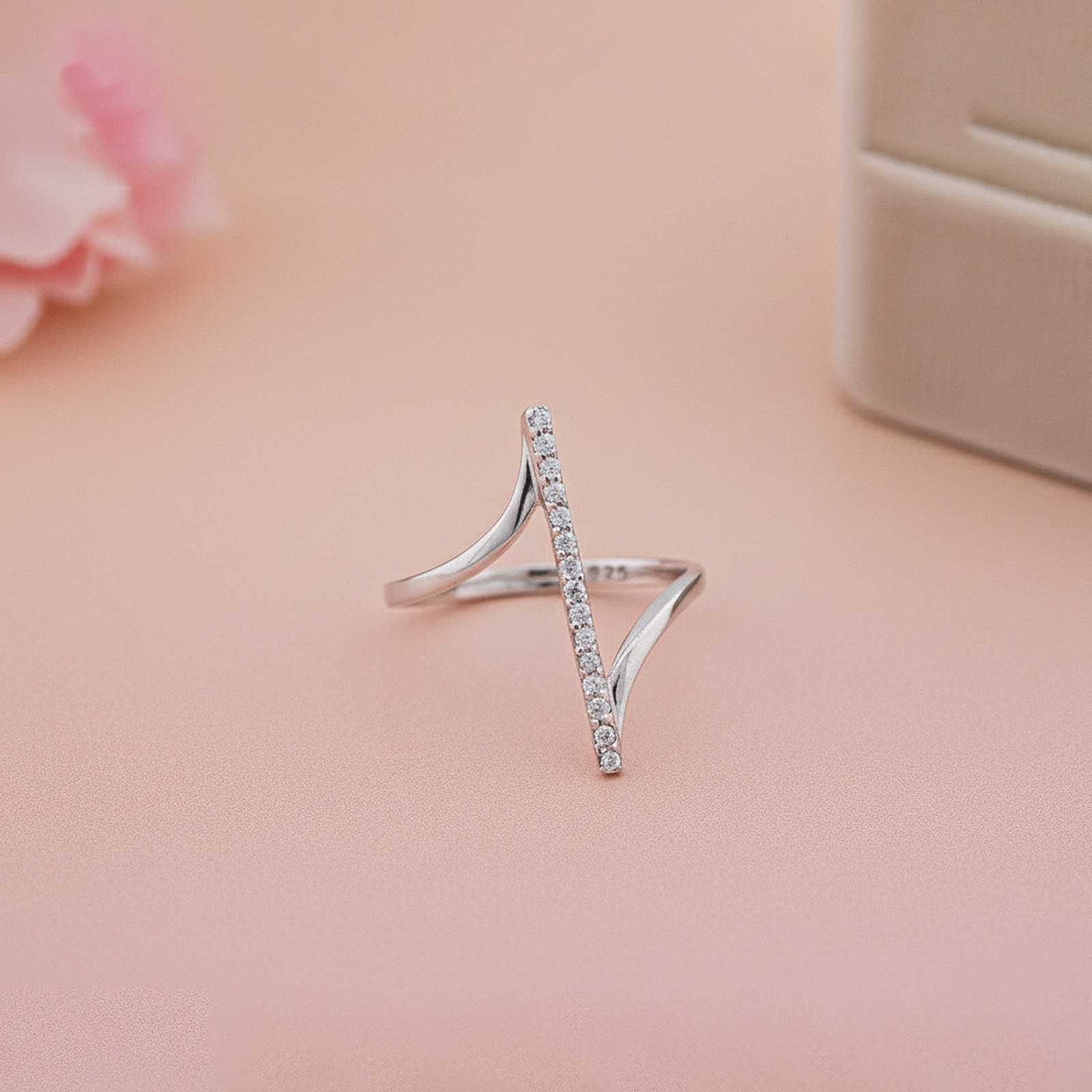The Silver ring has a zircon as the shape of twisted bar with plain band.