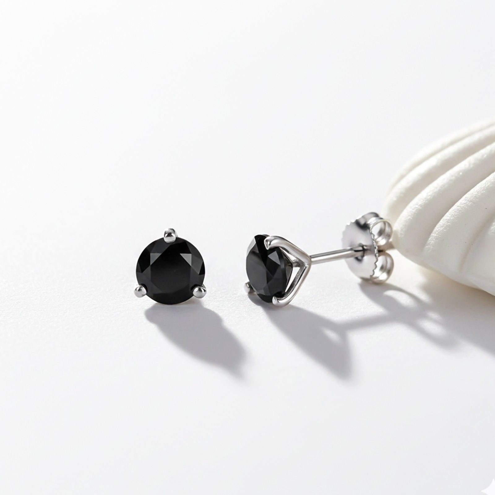 Silver Solitaire Black Diamond Stud Earrings