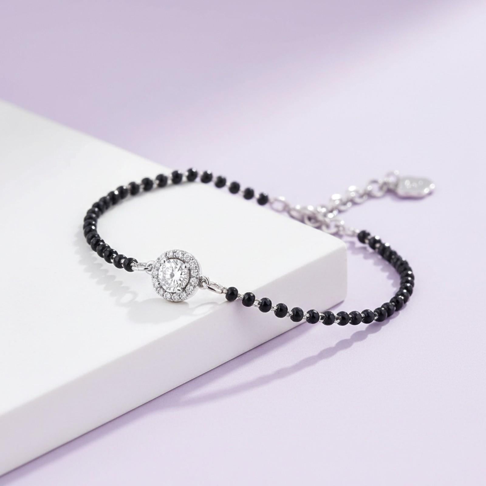 925 Sterling Silver Solitaire Halo Bead Bracelet a gorgeous piece that displays charm and class.