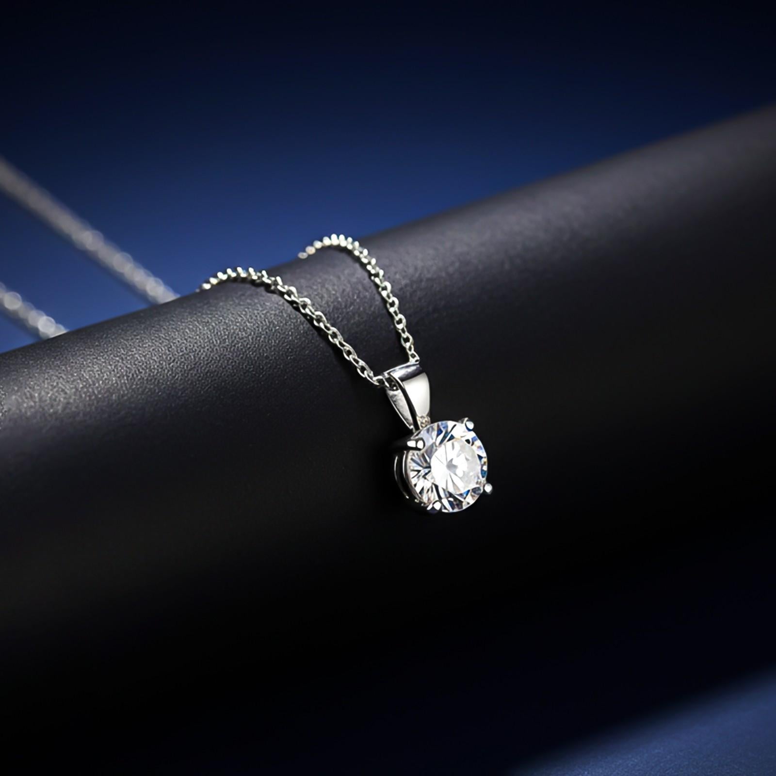 A round pendant set with silver solitaire. Made from premium sterling silver, this pendant shows an outstanding round solitaire gemstone that reflects classic style. It improves every outfit with a hint of classic elegance and is appropriate for a variety of occasions. This beautiful and flexible piece will improve your jewelry collection.