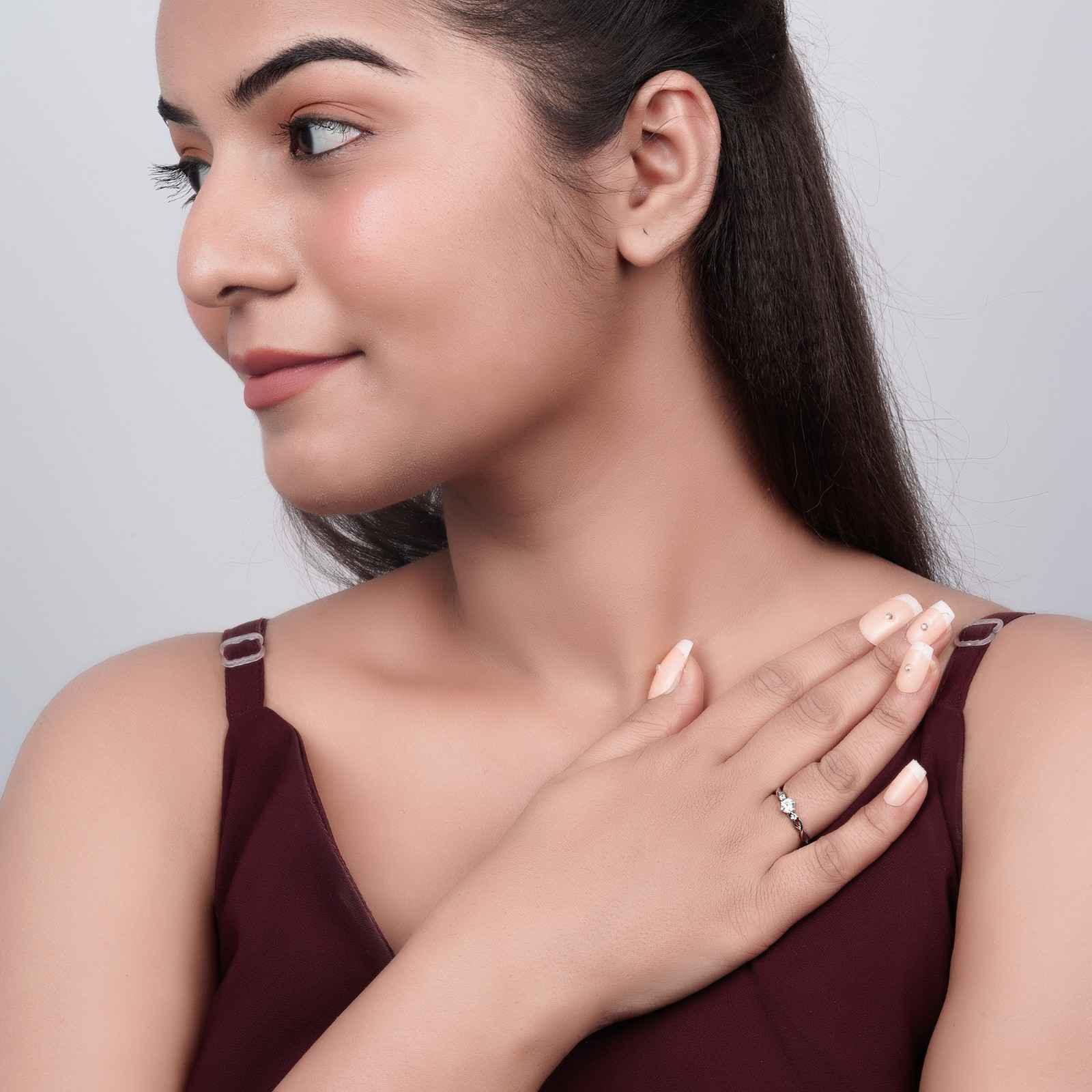 This ring is not only lovely, but it also serves as a reminder that good things come in threes. Three outstanding stones dance on a thin silver band, leading to a flood of brightness that will capture the hearts of all ages. This ring makes the ideal gift for the women and girls in your life. It is an iconic look that will be loved for years to come.