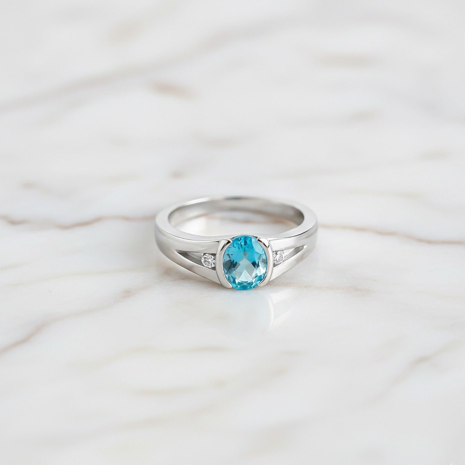Silver Solitaire Topaz Ring