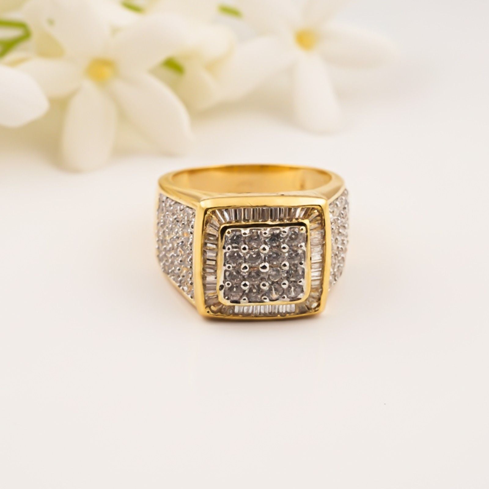 Silver Square Cluster Statement Ring for Men