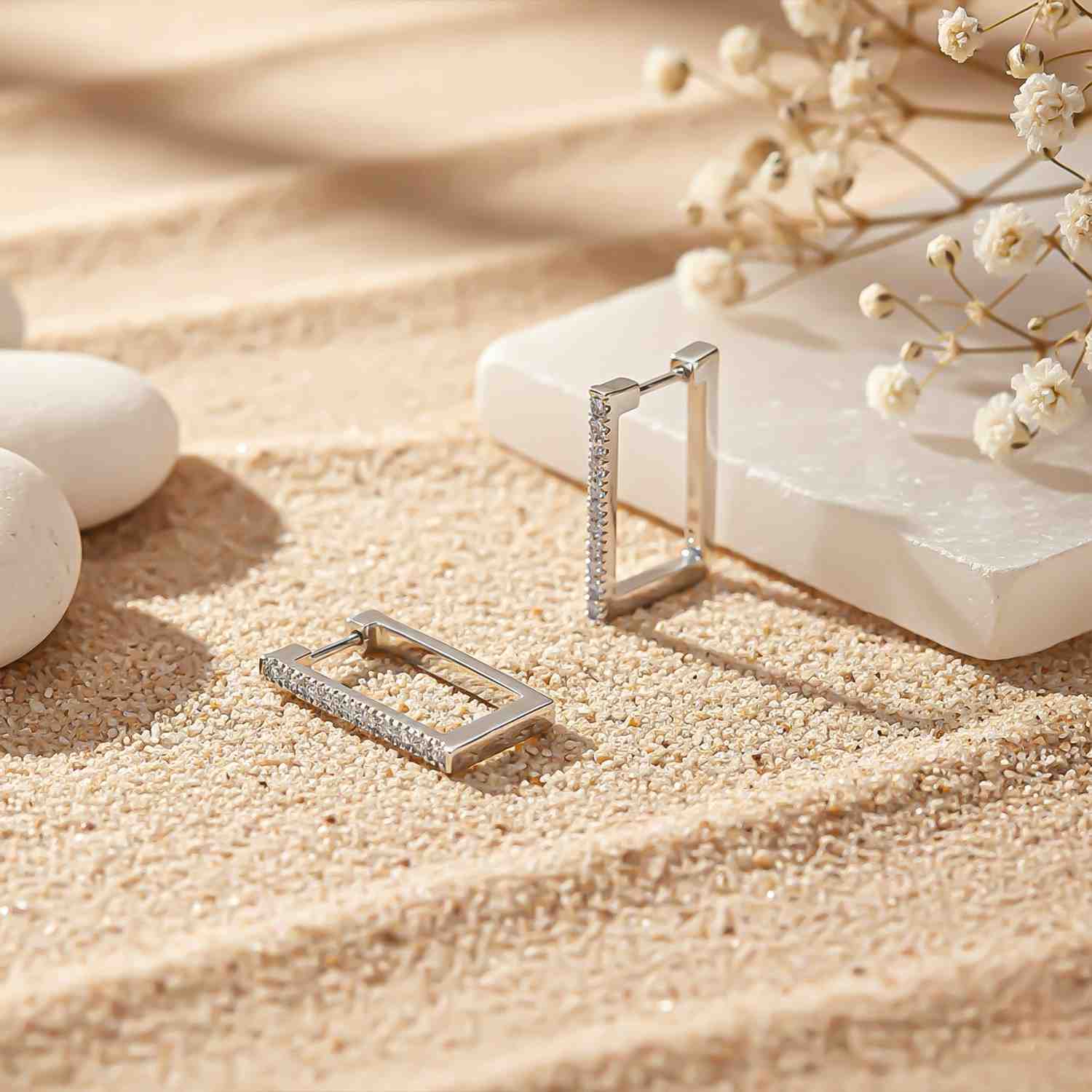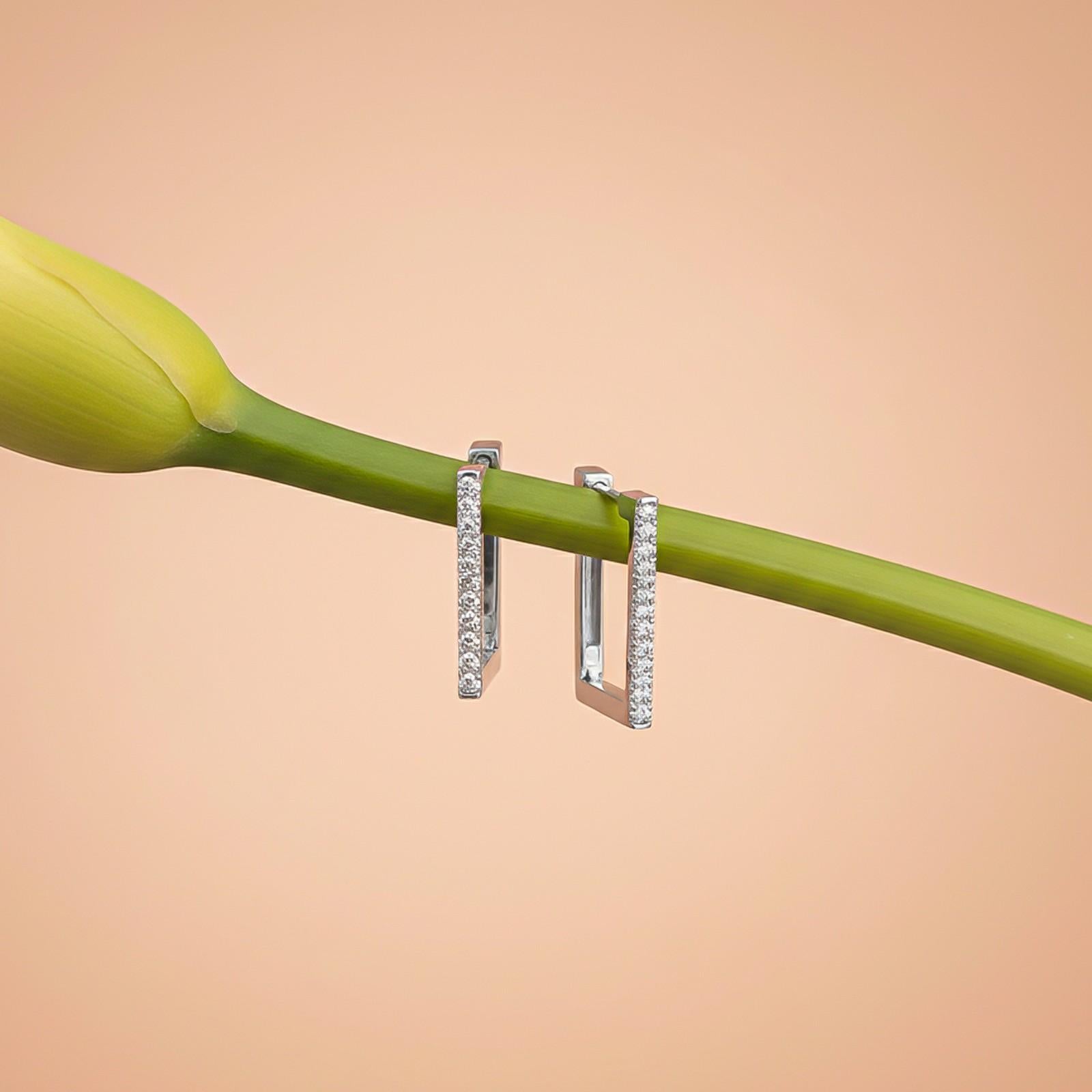 Bold lines and delicate curves combine to create a contemporary symphony of beauty and style in silver squares, which reinvent the traditional hoop.