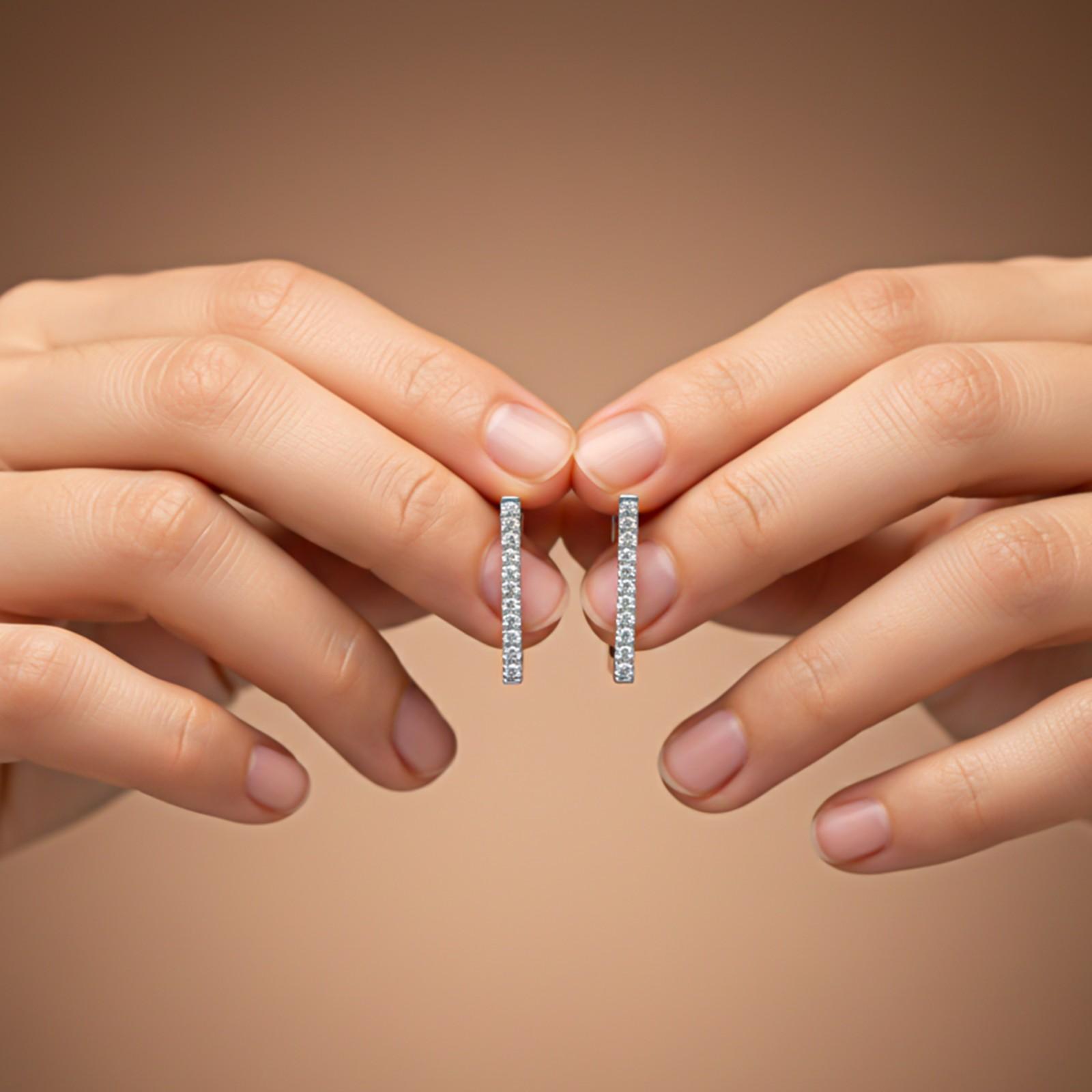 This silver earring features bar hoop motif studded with CZ in middle It is secured with a clip-on closure for added comfort and style.