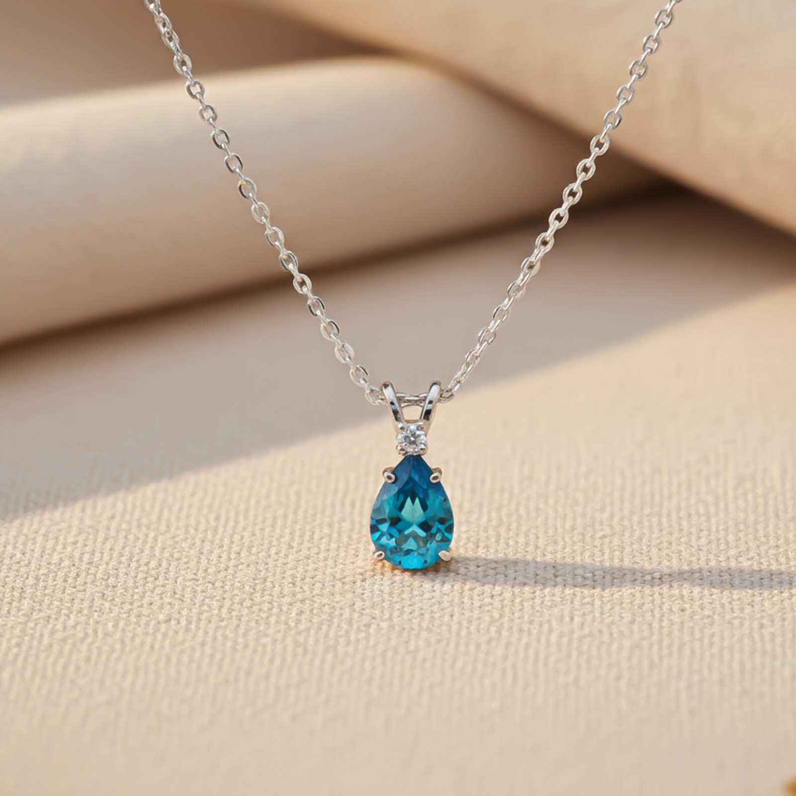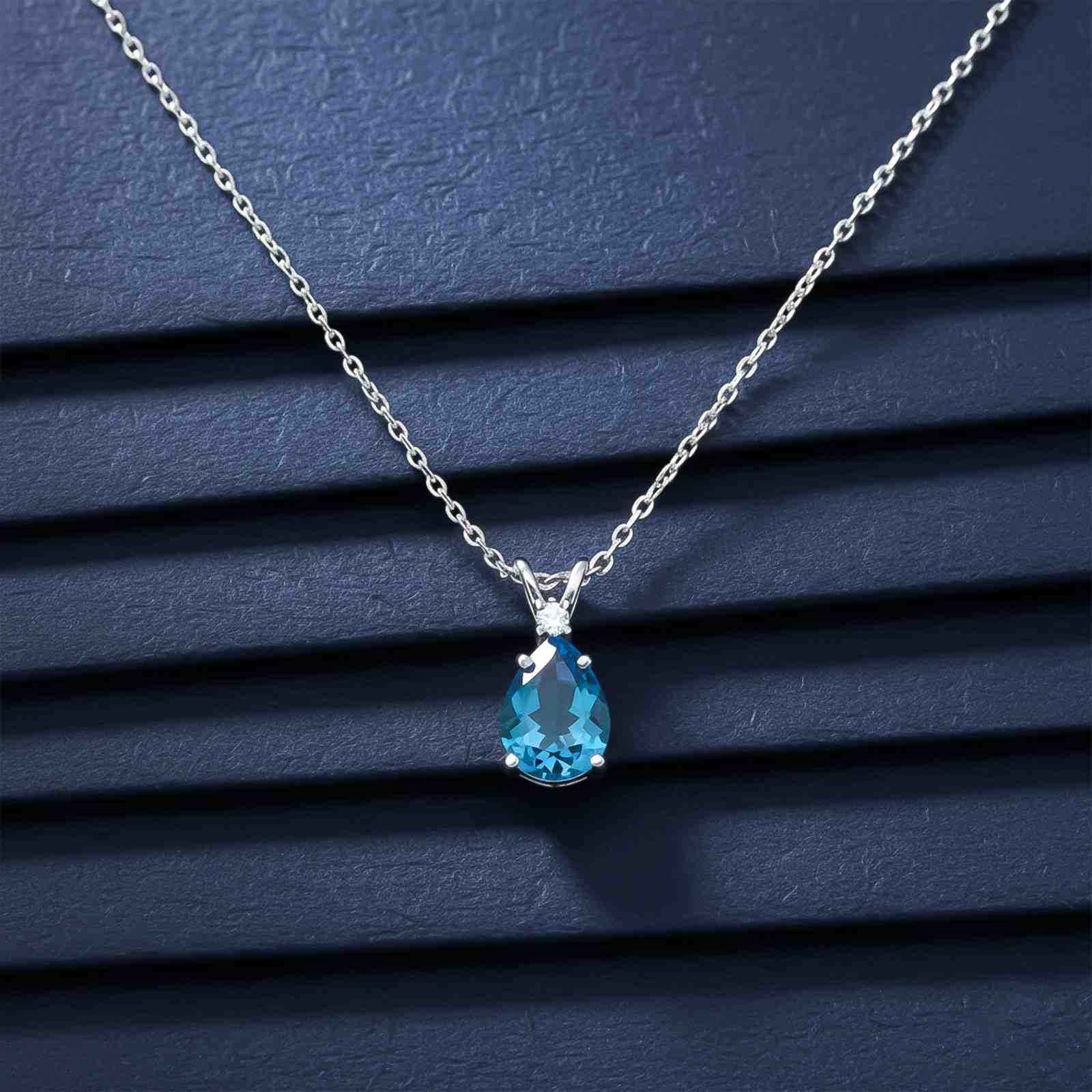 This silver pendant features a topaz teardrop motif. a perfectly paired loop with link chain.