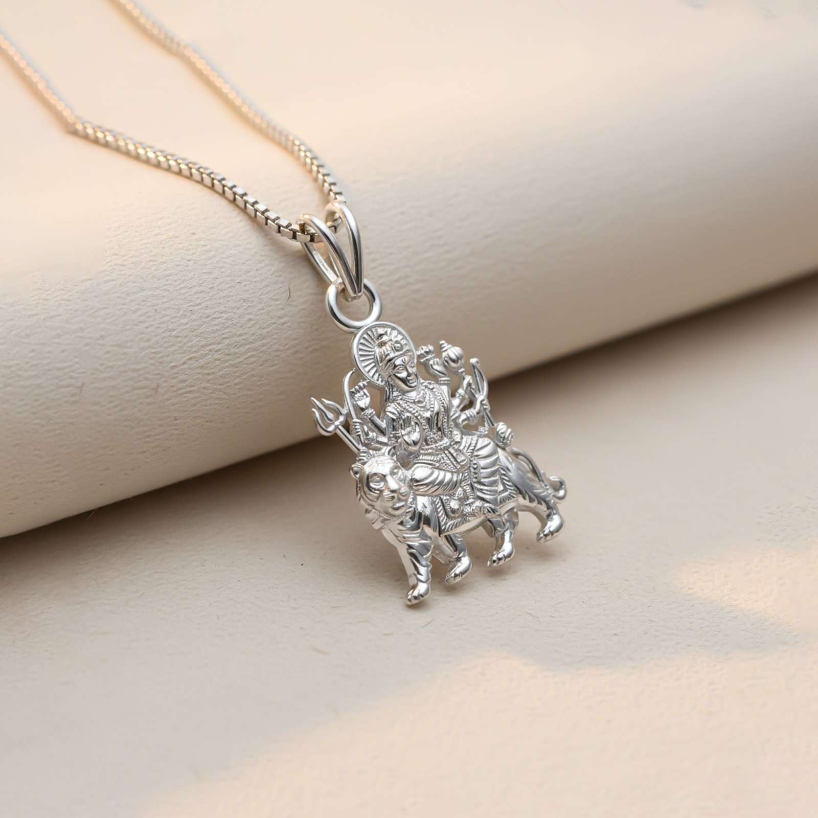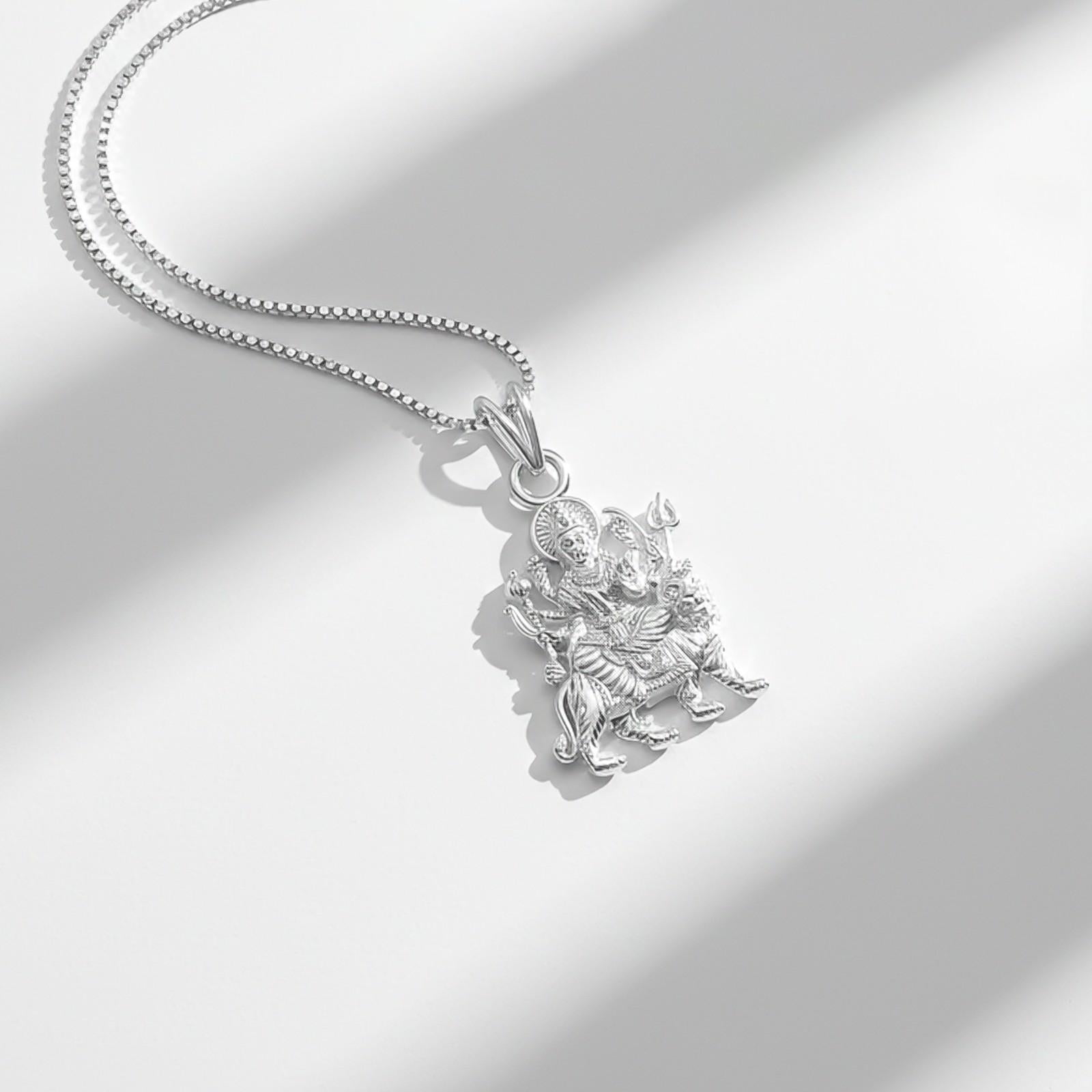 This exquisite Sterling Silver Goddess Durga Maa Pendant is a stunning piece of jewelry that beautifully captures the essence of the powerful Hindu goddess. Crafted with intricate detailing and precision, this pendant is a symbol of strength, protection, and divine femininity. Made from high-quality sterling silver, this pendant is a timeless piece that can be worn daily or on special occasions to invoke the blessings of Goddess Durga Maa.