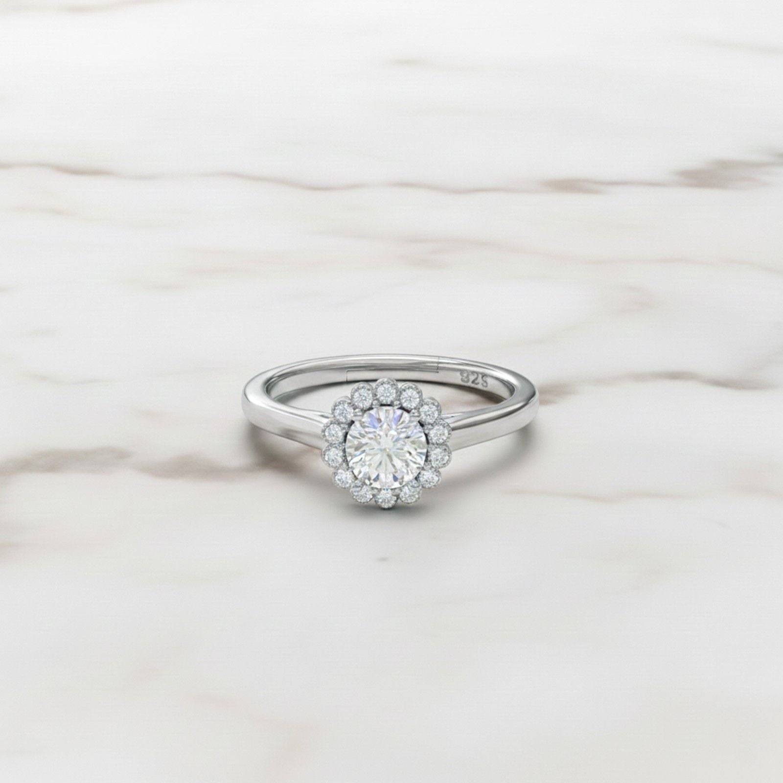Sterling Silver Halo Wedding Anniversary Ring