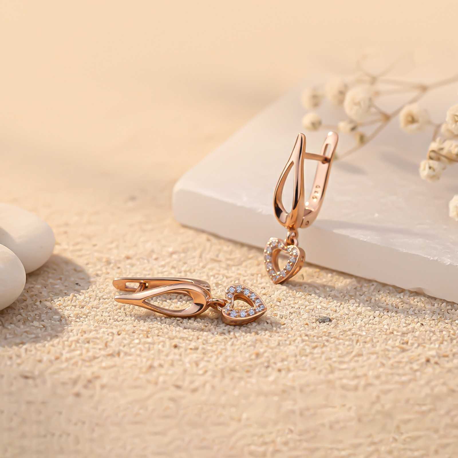 Sterling Silver Heart Drop Rose Gold Earrings