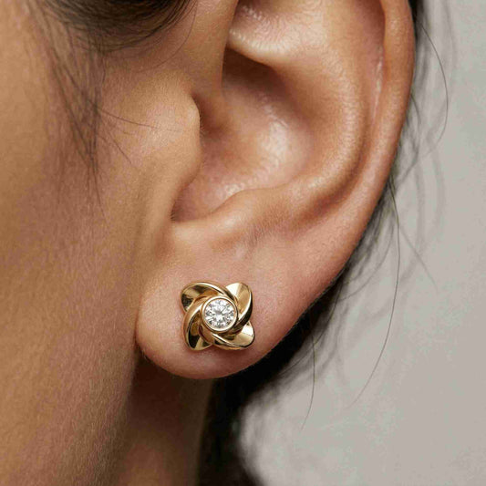 1.8Ct Moissanite Golden Bloom Swirl Stud Earrings